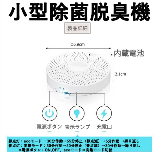 「ウィルス」「細菌」「悪臭」を除菌!手のひらサイズの【小型オゾン除菌脱臭器】
