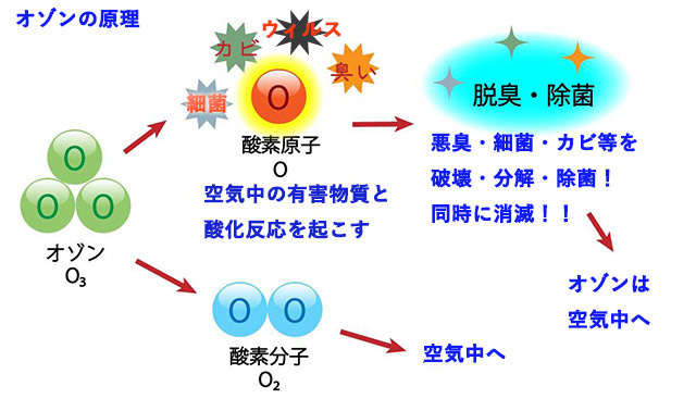 (*身近な所の例をあげるとコピー機からオゾンの匂いを感じた事はありませんか?コピー機のランプから出る紫外線によって微量のオゾンが発生する例があります。このことからオゾンの匂いを「コピー臭」と呼んでいる文献もあります。また、森林や海岸でオゾン臭を感じる事が多いのは紫外線が強い為と言われています)
