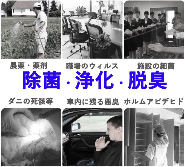 このように作用した後に物質そのものや気体が残ることがないので問題なく除菌・脱臭・清浄ができます。