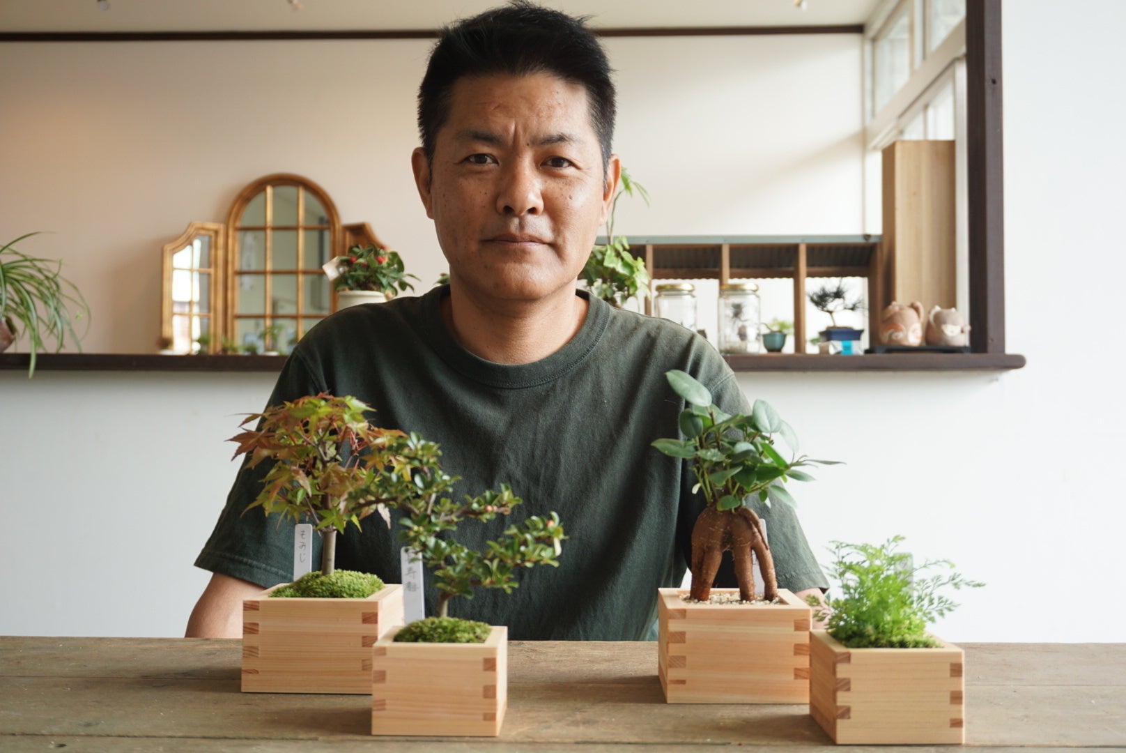<情景盆栽>「インテリア盆栽工房BonCyu」:テレビにも多数出演しており、全国的にも人気の盆栽ショップです。中尾浩之さまが枡の中で独自の世界観を表現したオリジナル盆栽は和洋問わず、どんな空間にも溶け込みます。 (岐阜県揖斐川郡)BonCyu 中尾浩之さま