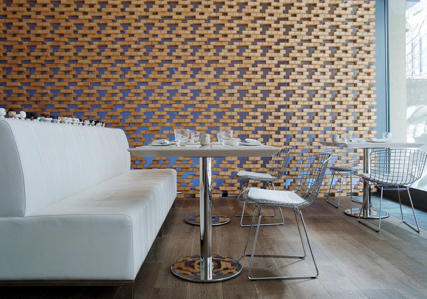飲食店や公共施設等で枡を内装に使い、空間をデザインする場所が増えてきました。枡にしか表現できない立体感やインパクトがあり、なおかつヒノキによる癒しも感じることができます。枡の新たな可能性として、現在施工事例も増えてきております。また枡の内装材を体験できるARアプリもリリースしております。