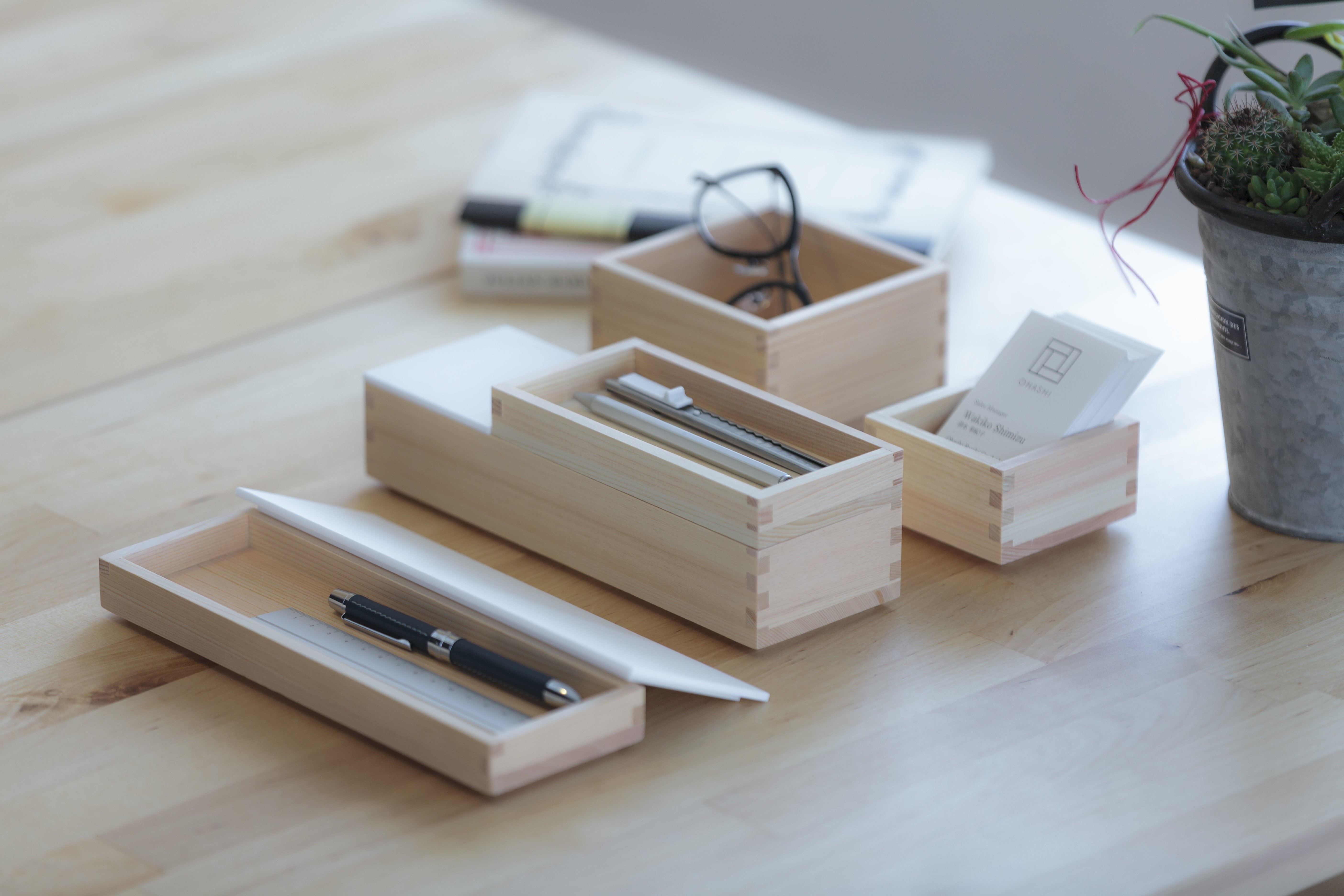 ◆枡づくりの技術を活かした暮らしを彩る商品の開発(左:収納箱、右:エコ加湿器)