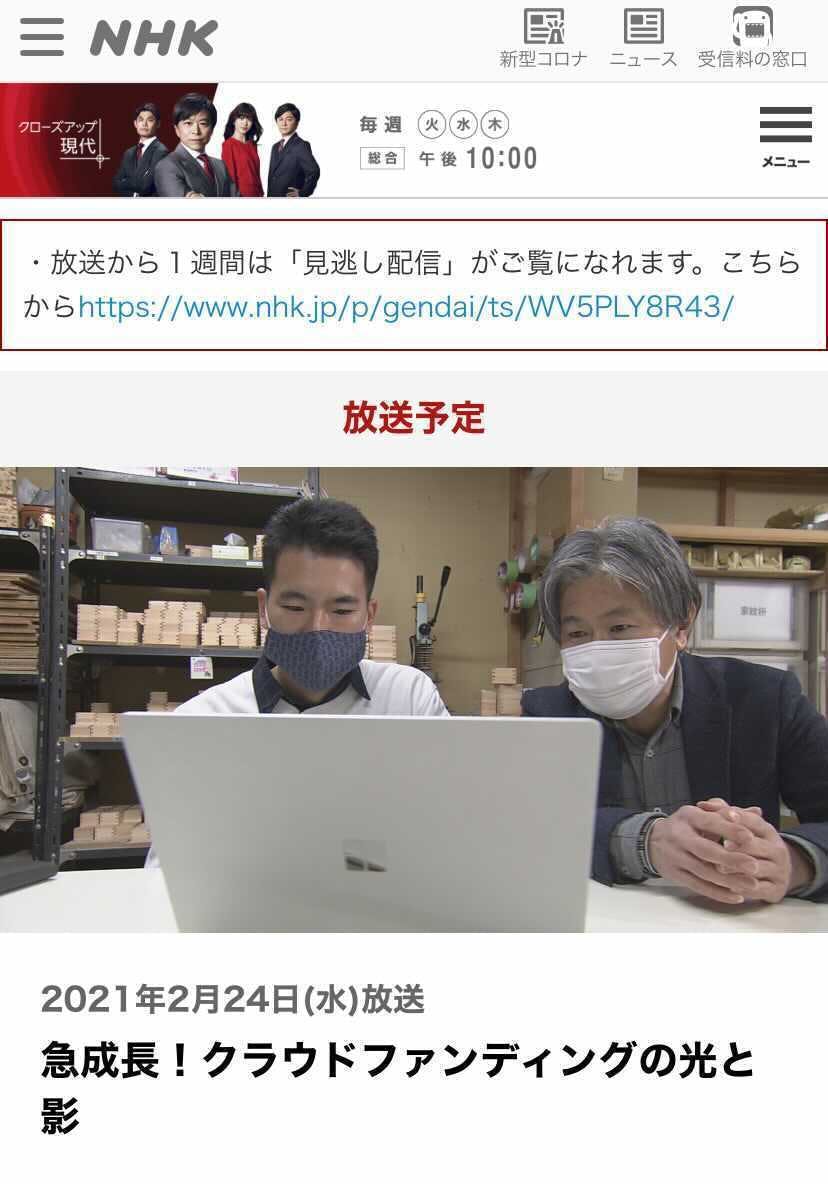 そして、2月24日(水)22時からのNHK総合『クローズアップ現代+』の「急成長!クラウドファンディングの光と影」という内容で、大橋量器がクラウドファンディングの事例の一つとしてチラッと出演することになりました。