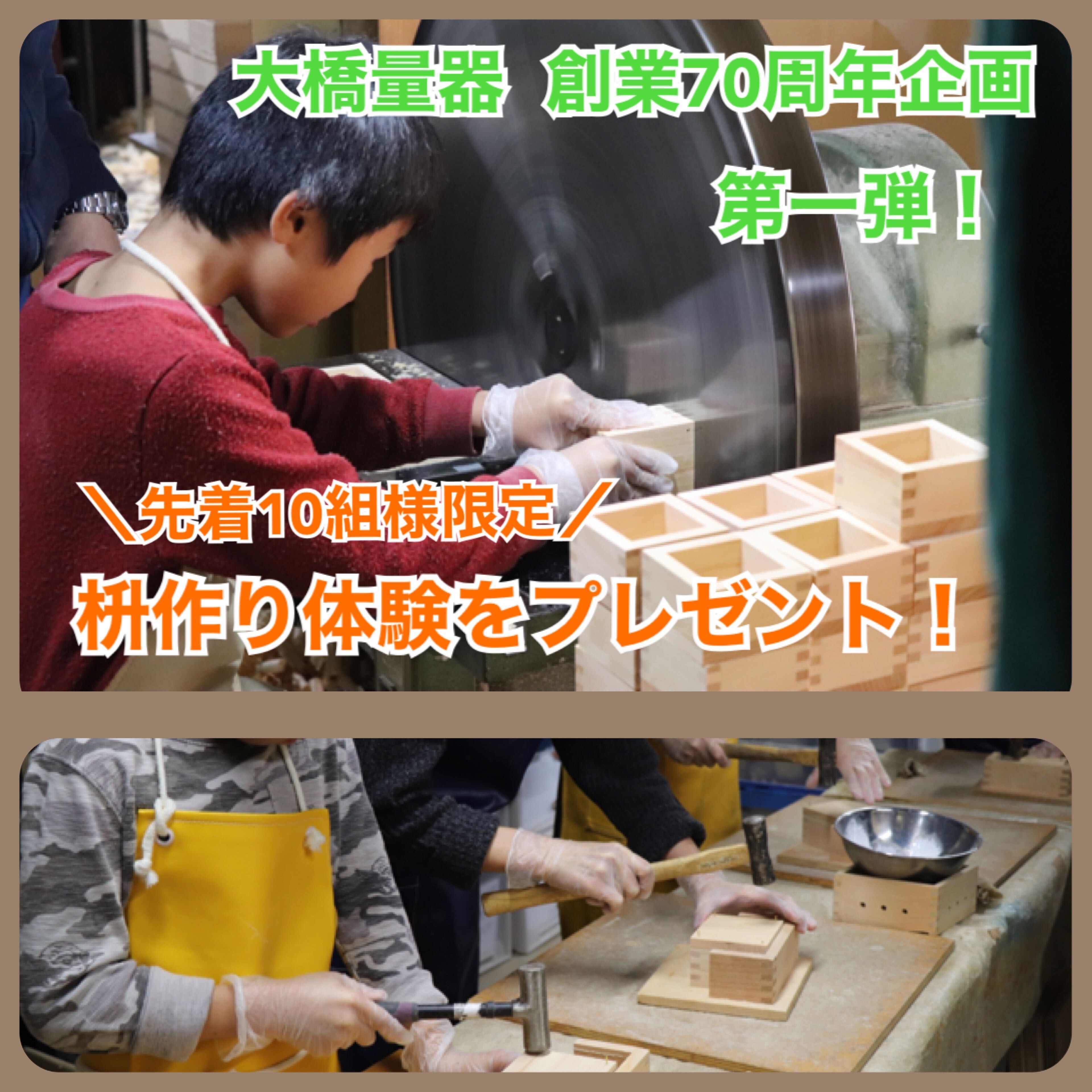 皆様、こんにちは!2020年も残すところあとわずかになりました。皆様の年末のご予定はいかがですか?2020年は弊社もコロナの影響を受け、製品の売り上げが厳しい状況にありました。ですがそんな逆境にも負けず!大橋量器は新しくクラウドファンディングを立ち上げます!クラウドファンディングのURLはこちら!↓https://camp-fire.jp/projects/view/354066【枡で地域を元気に! 大垣の枡屋が枡の魅力を体験できるマイクロツーリズム事業に挑戦】私たちはこれまで「枡」を通して、皆様の様々なシーンに彩りを添えたいと想い、商品を届けてまいりました。そして、次のステージとして、「大垣の枡」を通して、今度は大垣を含めた西濃エリアを楽しんでもらい、この地域を好きになっていただき、地域活性化に繋げたいと思っております!!本日12月22日(火)午後12時からプロジェクトがスタートします!今回、大橋量器がツーリズム事業に挑戦します。人気の枡作り体験についてはもちろん、さまざまな楽しいアクティビティがたくさん!ぜひ多くの方に、西濃地域の魅力を楽しく知っていただきたいと思っております。この事業を成功させ、西濃エリアをもっともっと好きになっていただきたいと思っております!皆さん、ご支援をどうぞよろしくお願いいたします!!