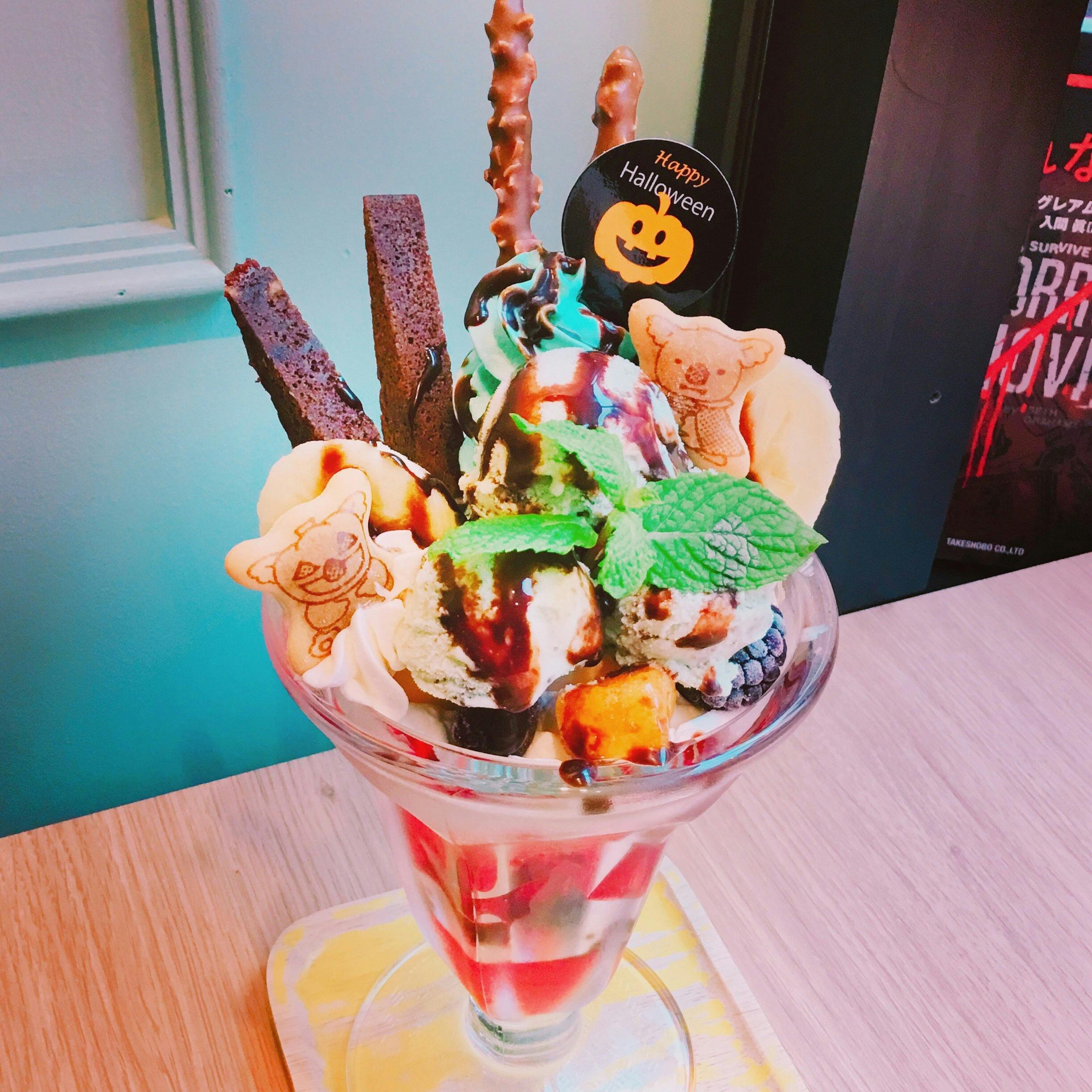 幸せの青い卵をチョコミントアイスで表現した幸せのミントパフェがお店の一押しです。