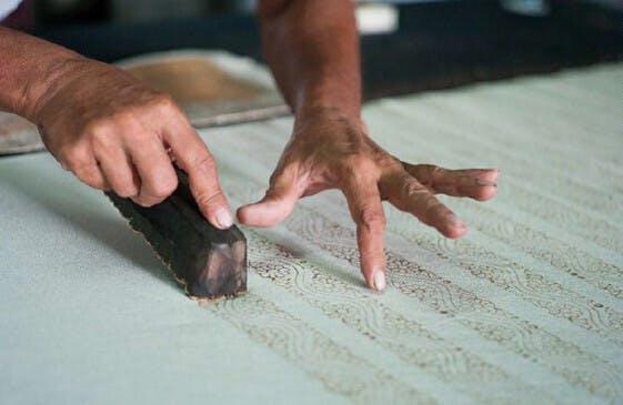 木版ブロックプリントの様子 (現地インドの生産地より)