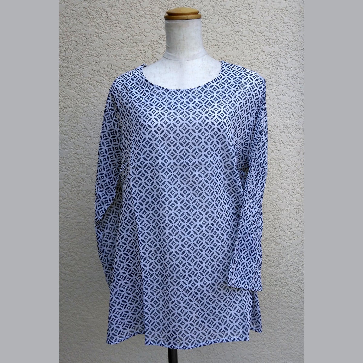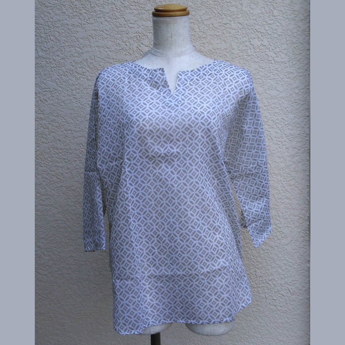 柄は味わいのある、ブロックプリント。現地の担当者の名前を取ってDevikaPrintと呼んでいます。