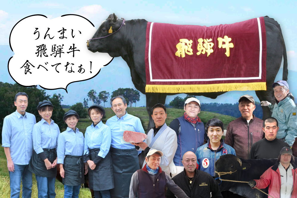 飛騨牛を生み出すところから、お客様の胃を満たすところまで、連携する事業者が全て登場します。