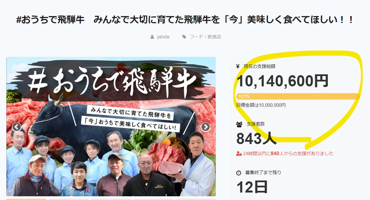 そこで、ネクストゴール3,000万円を設定し、より飛騨牛に携わる畜産農家、販売店の皆さんが安心してお肉をお届けできるように準備してまいりたいと思います、