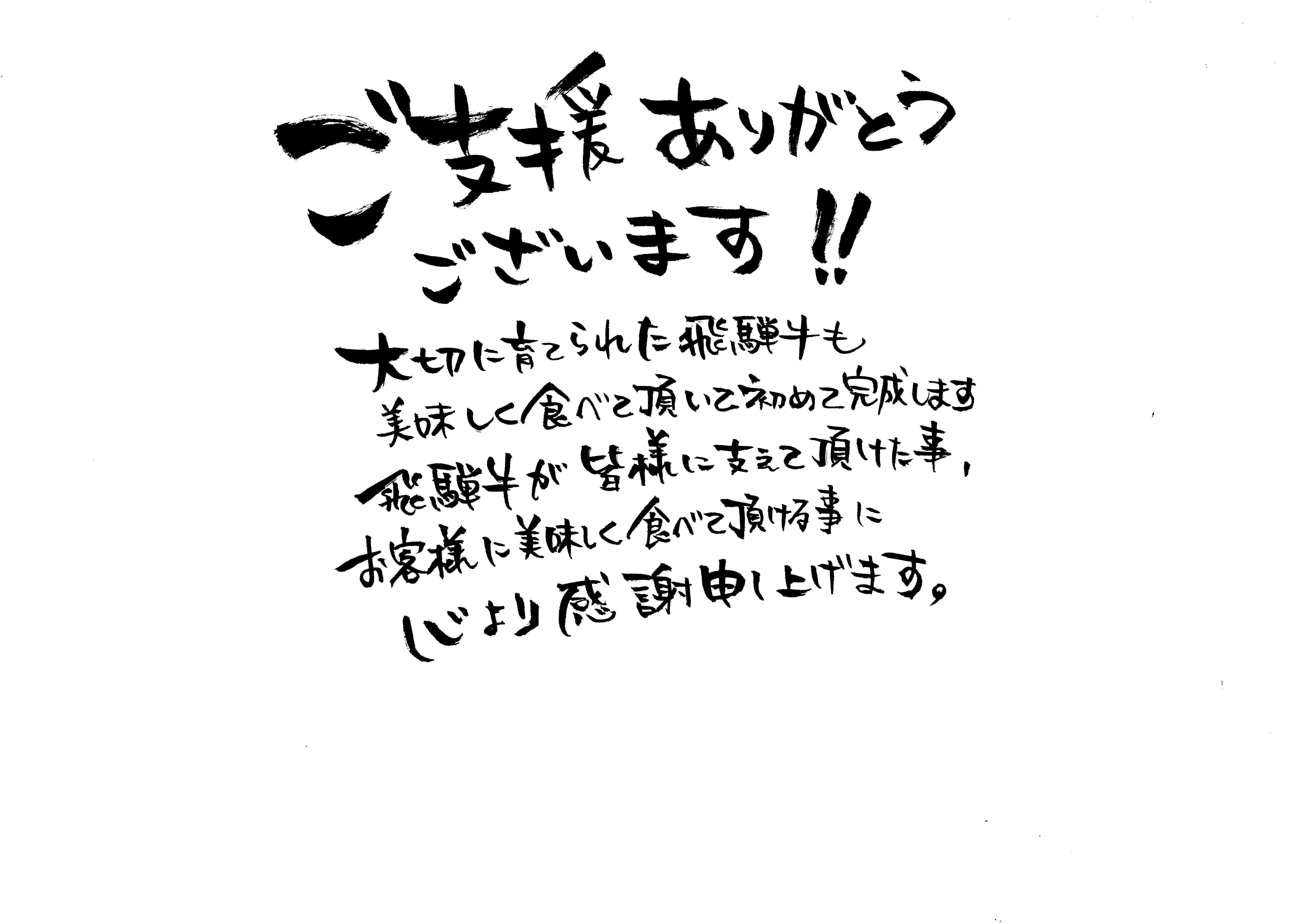 コロナで大変なときにご支援頂いた方の気持ちに少しでも応えたく、飛騨牛を育て、お届けするまでの全員の気持ちを載せたお礼状を製作しています。