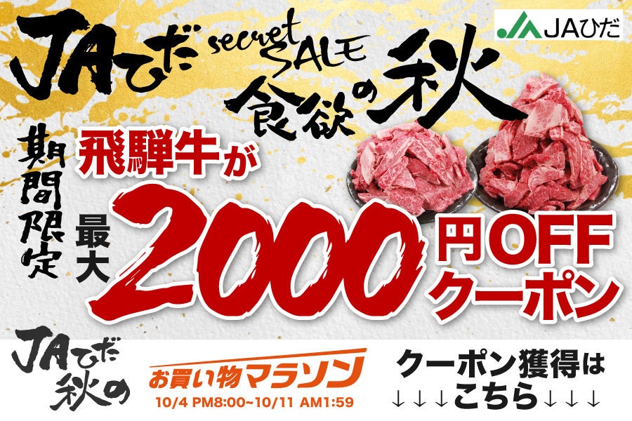 飛騨牛限定で最大2,000円オフのクーポンをご用意しました!是非、この機会においしい飛騨牛をご堪能ください。