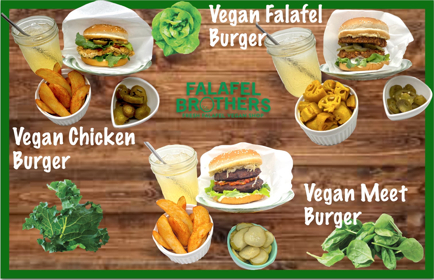 To create the new Falafel Brothers burger, we will not be using the finest meat...we’ll make it ALL VEGAN, which uses no animal ingredients.