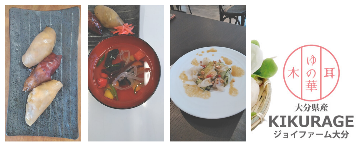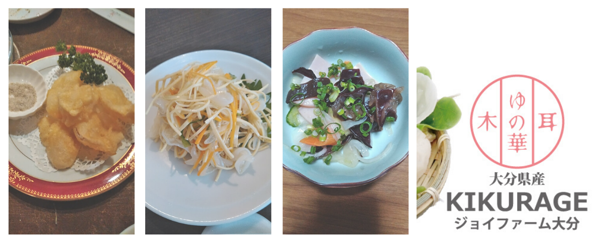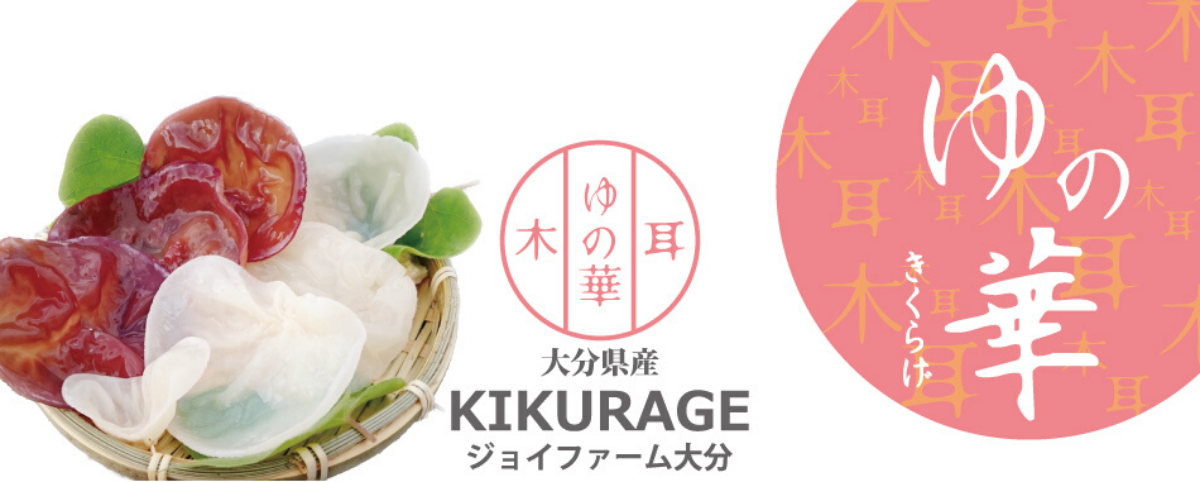 現在流通しているきくらげの98%は中国からの輸入品であり乾燥品です。国内産の生きくらげを目にすることは殆どありません。ジョイファーム大分が生産する「大分きくらげゆの華」は培地となるおが屑、菌子に至るまで国内産にこだわり、農薬、肥料は一切使用せず無菌の室内で温度と湿度の徹底した管理のもと安心安全な純国産キクラゲの通年栽培に挑戦しています。利用者は収穫から石づき除去、洗浄、袋詰め、ラベル張り、出荷に至るまで全工程において関わり、やりがいを持って作業を行っています。