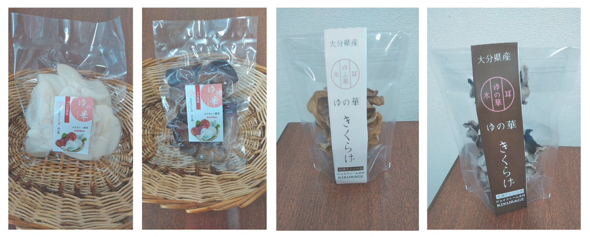 中でもきくらげ生産事業は「大分きくらげゆの華」として県内の別府ホテル晴海、湯布院亀の井別荘など高級ホテル、高級料理店が取引先となっており弊社のメイン事業と位置付けています。しかし”生”きくらげの販売ににこだわる弊社は賞味期限が5日と短かい為、販路も県内に限定され販路開拓に苦戦して来ました。
