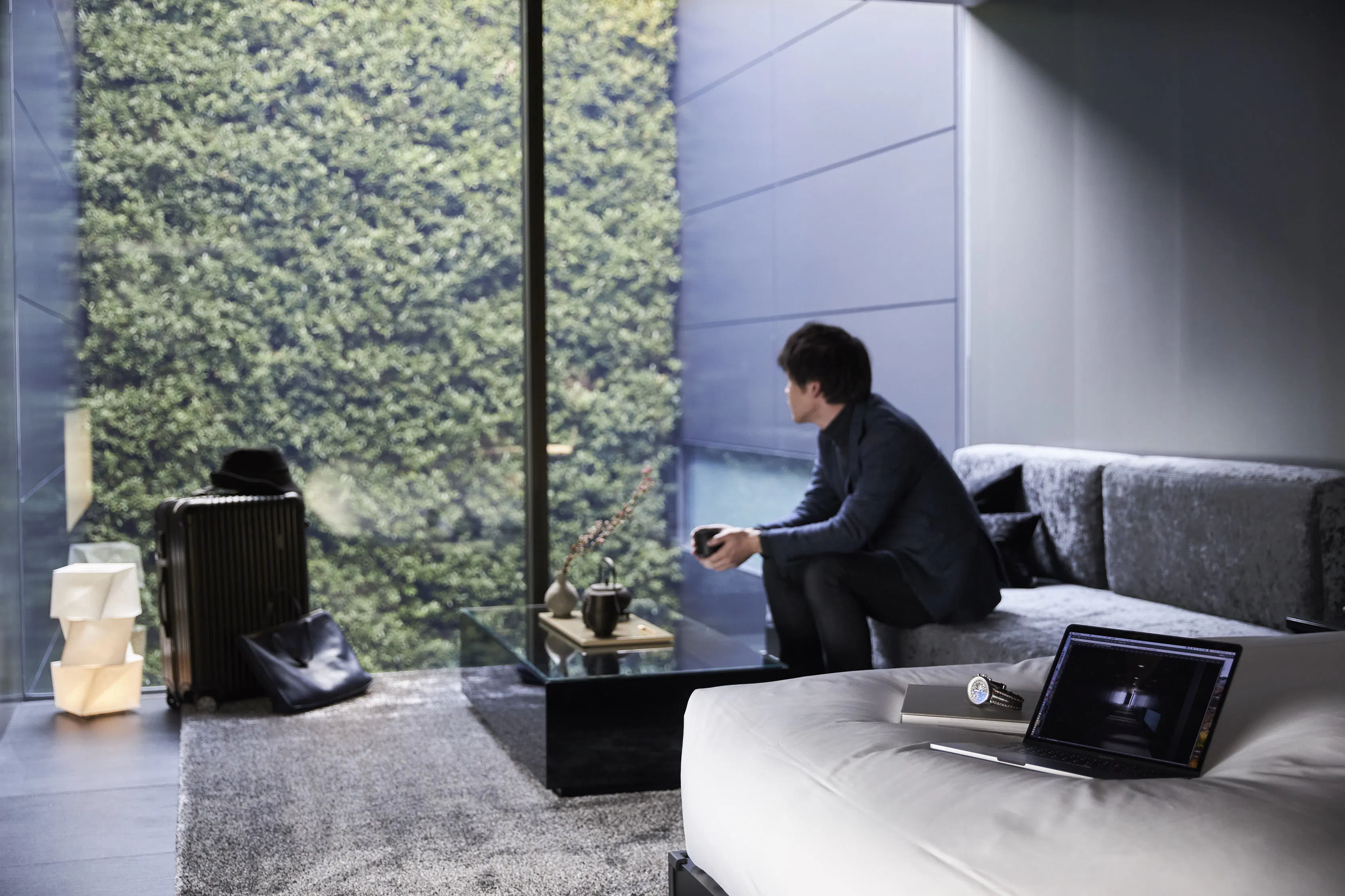 こちらの3室のみ、建物内部に吹き抜けで作庭されている、クチナシの壁面緑化のお庭に面しております。大きな窓から、ソファーやベッドでおくつろぎの際にも、また、ゆったりとしたバスタイムにも存分に壁面緑化をお愉しみいただけるよう設計されています。