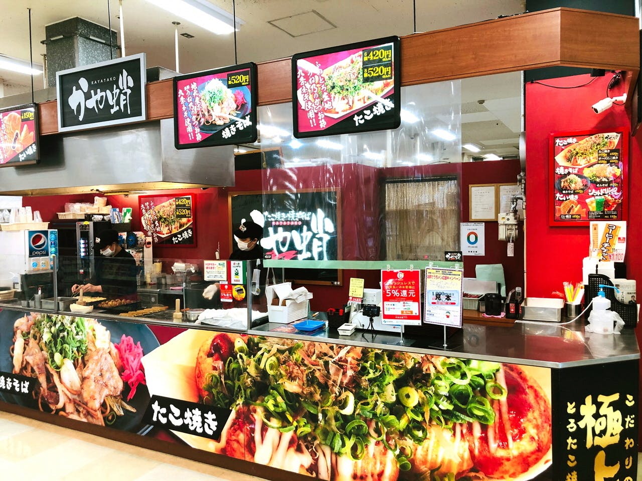 ショッピングセンター・アルプラザ亀岡店の1階で営業中のたこ焼き屋さん、かや蛸。