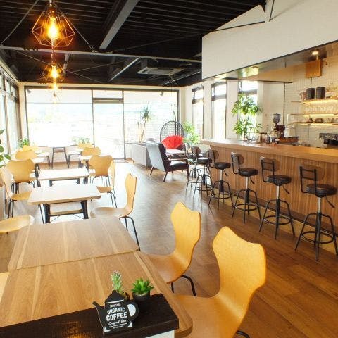 テラス席や店内の大きな窓から田園風景が望める開放感のある田舎カフェです。