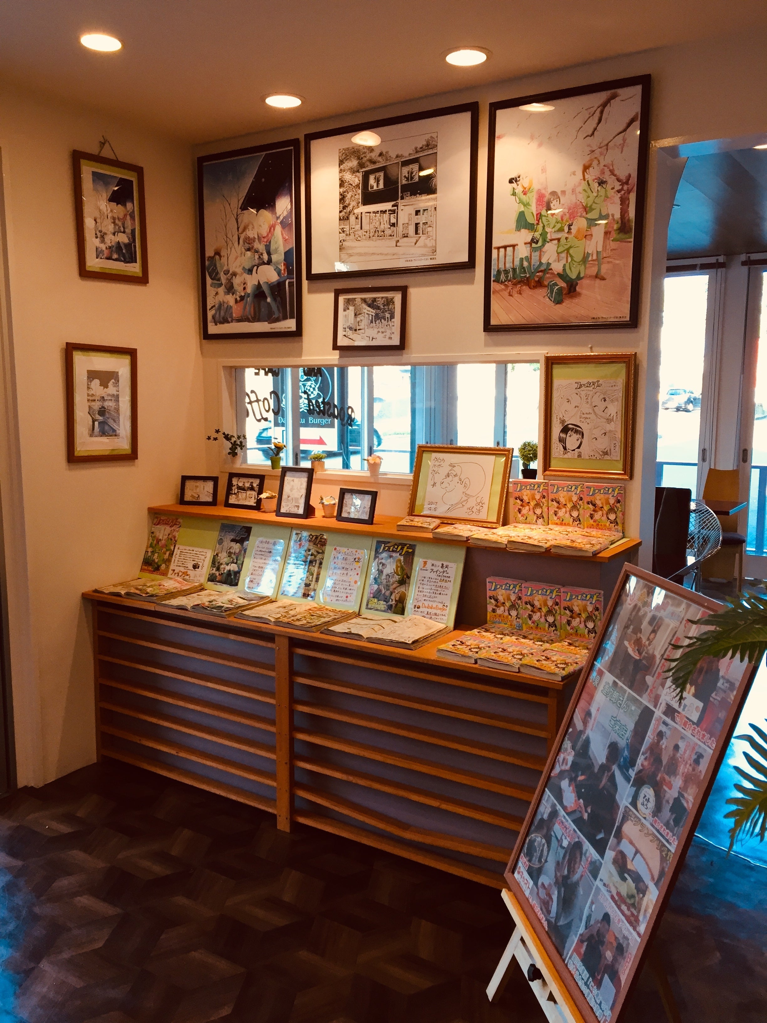 実際に秋本先生が来られた事もあり、お店入り口付近の一角には直筆サインや各種イラスト等の展示コーナーも。ファンの方は必見!