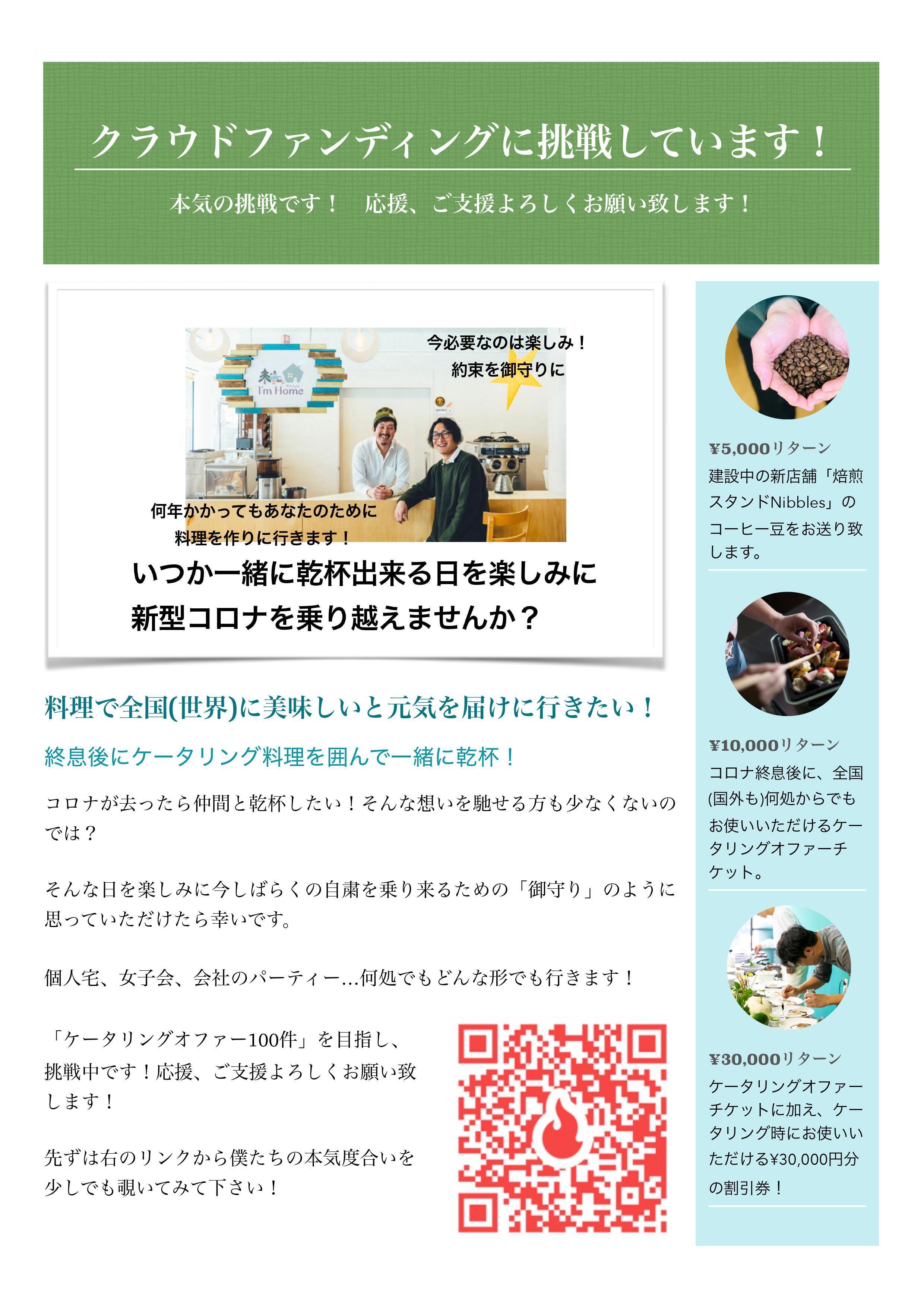 ・支援金は、「新店舗メニューの試作」「焙煎ためのコーヒー豆の購入」と、申し訳ありませんが、新型コロナウイルスを乗り切るための現店舗の運転資金に使わせていただきたく思います。