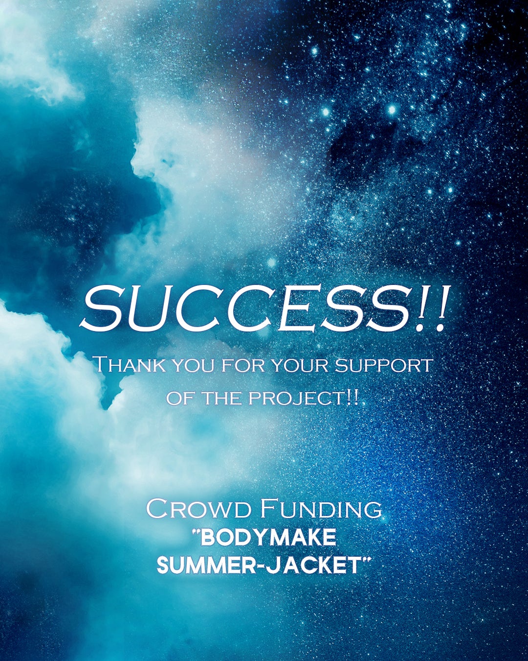2020/07/27 12:06モノゴトの八木です。ハンサムシリーズ☆サマージャケットご支援有難うございました。お陰様で目標を達成することが出来ました。心より感謝いたします。本日より生産開始!進捗は活動報告にてアップさせて頂きます。今後とも宜しくお願い致します! もっと見る