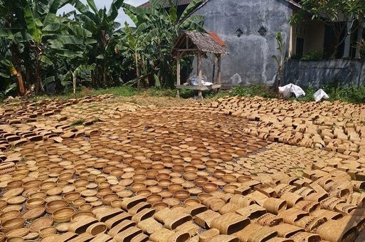 編んだあと、インドネシアの灼熱の太陽のもと、1週間ほど天日に干されます。