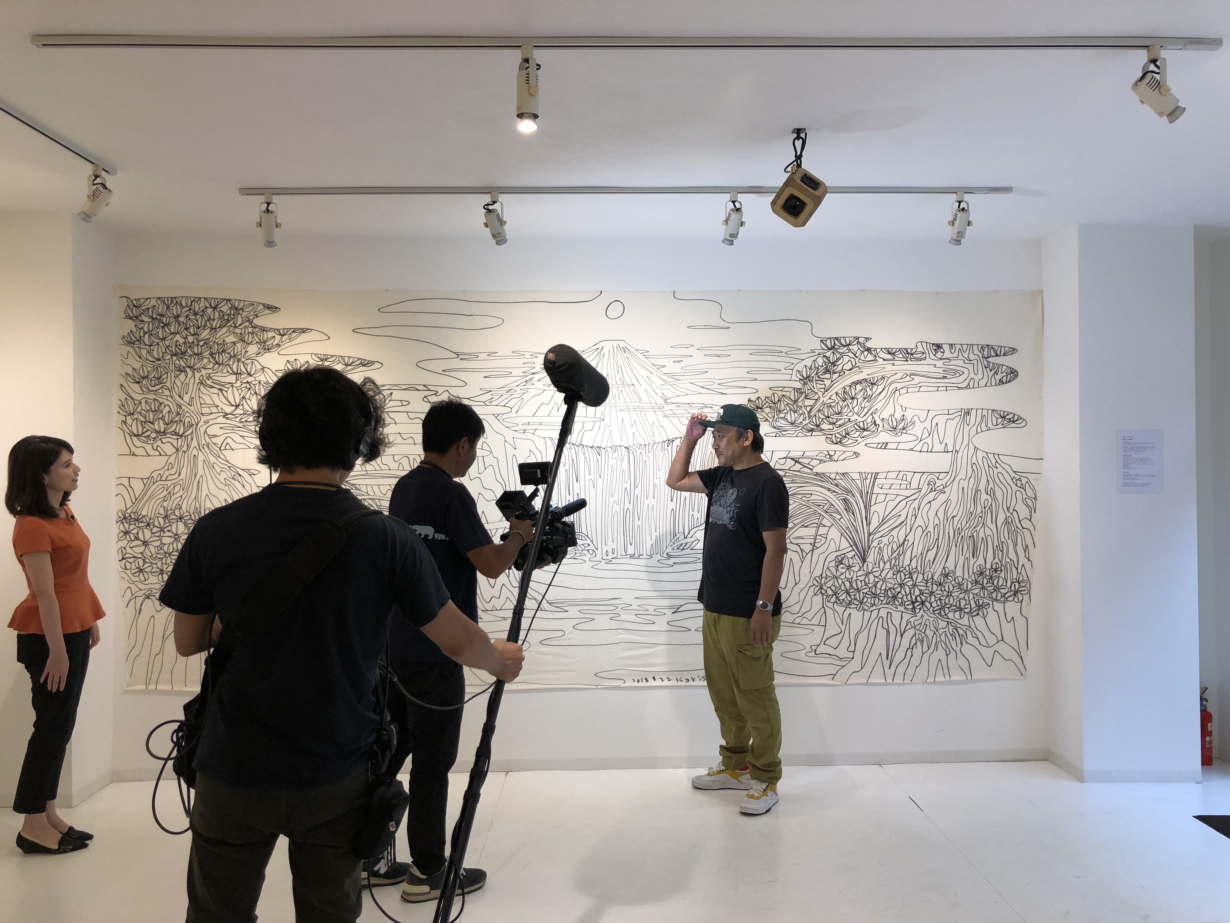 普段は全て手描きの一点モノの作品が売りのharunachicoさん。今回のプリントTシャツは、アウトラインだけのモノトーンに挑戦。