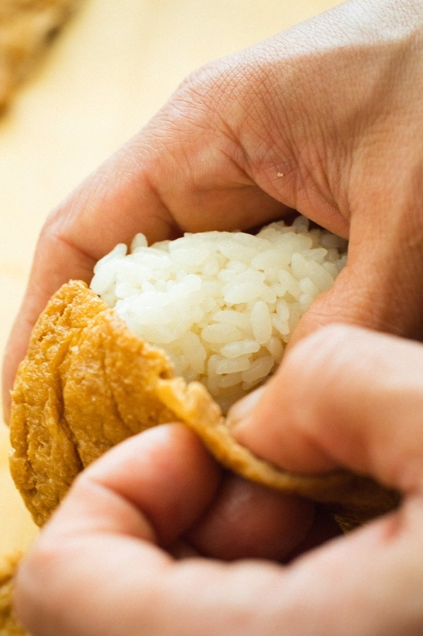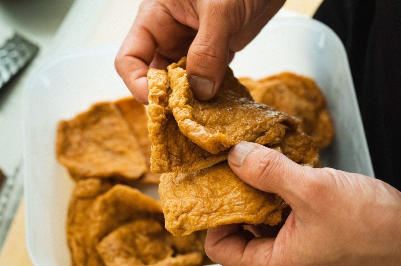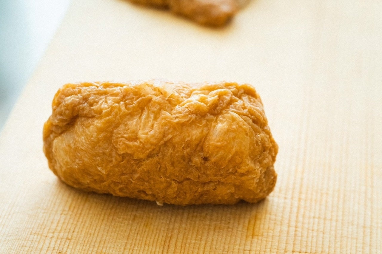 関東スタイルの俵型のおいなりさん。職人さんが手揚げしているお揚げを使ったこだわりのおいなりさんです。