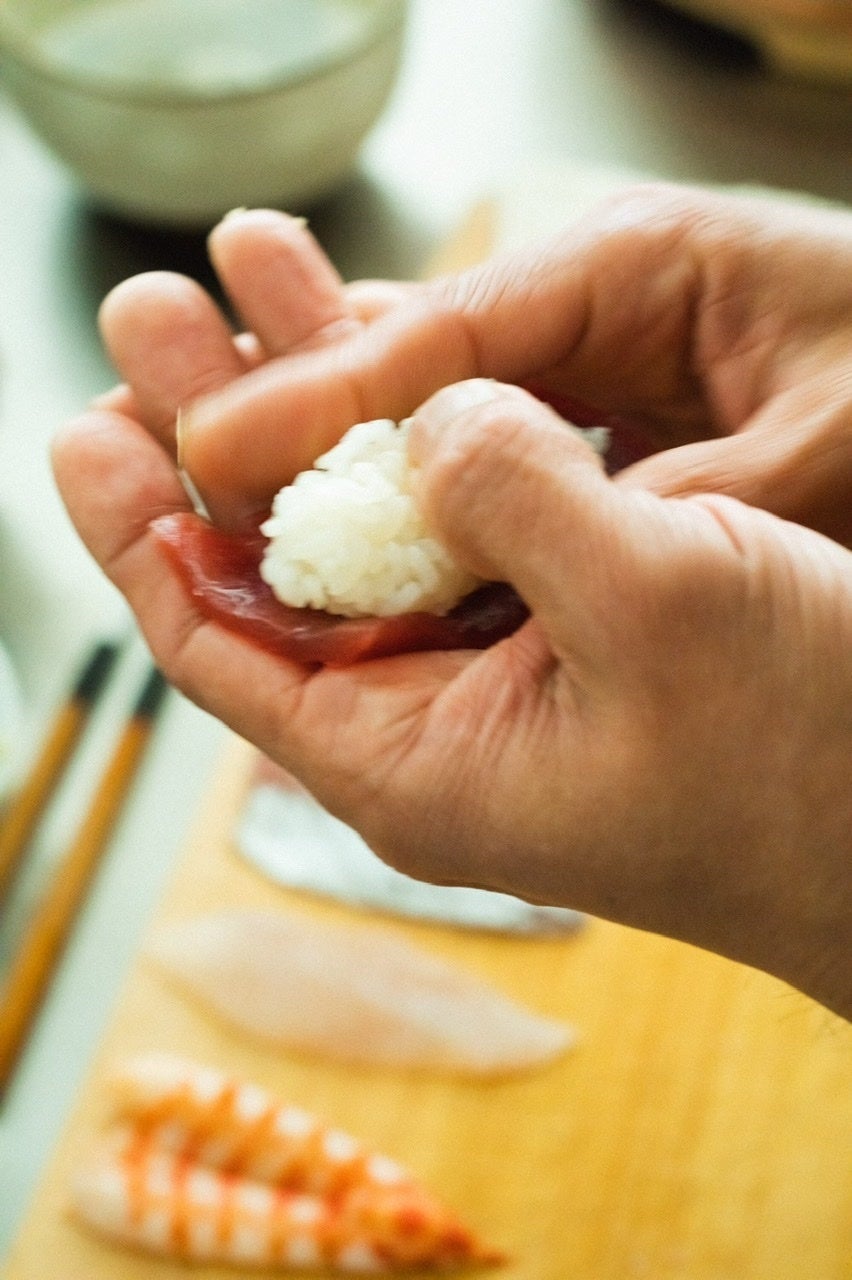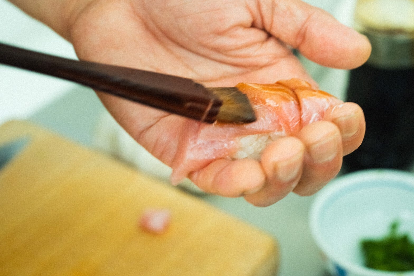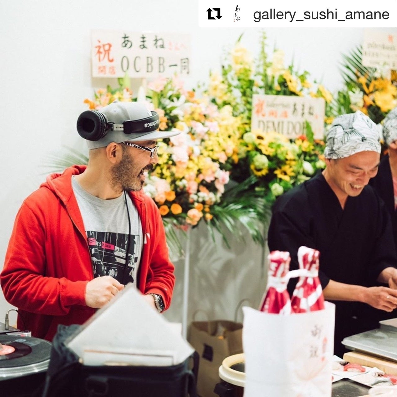 元築地市場仲卸であり、あまねオープン前は都内を中心にケータリングで寿司を握っておりました。上場企業のケータリングサービスでも活躍。その頃レセプションパーティーなど様々な場面で握り、寿司なら匂いも付かず、煙も出ないのでアートと共存できると気付きました。
