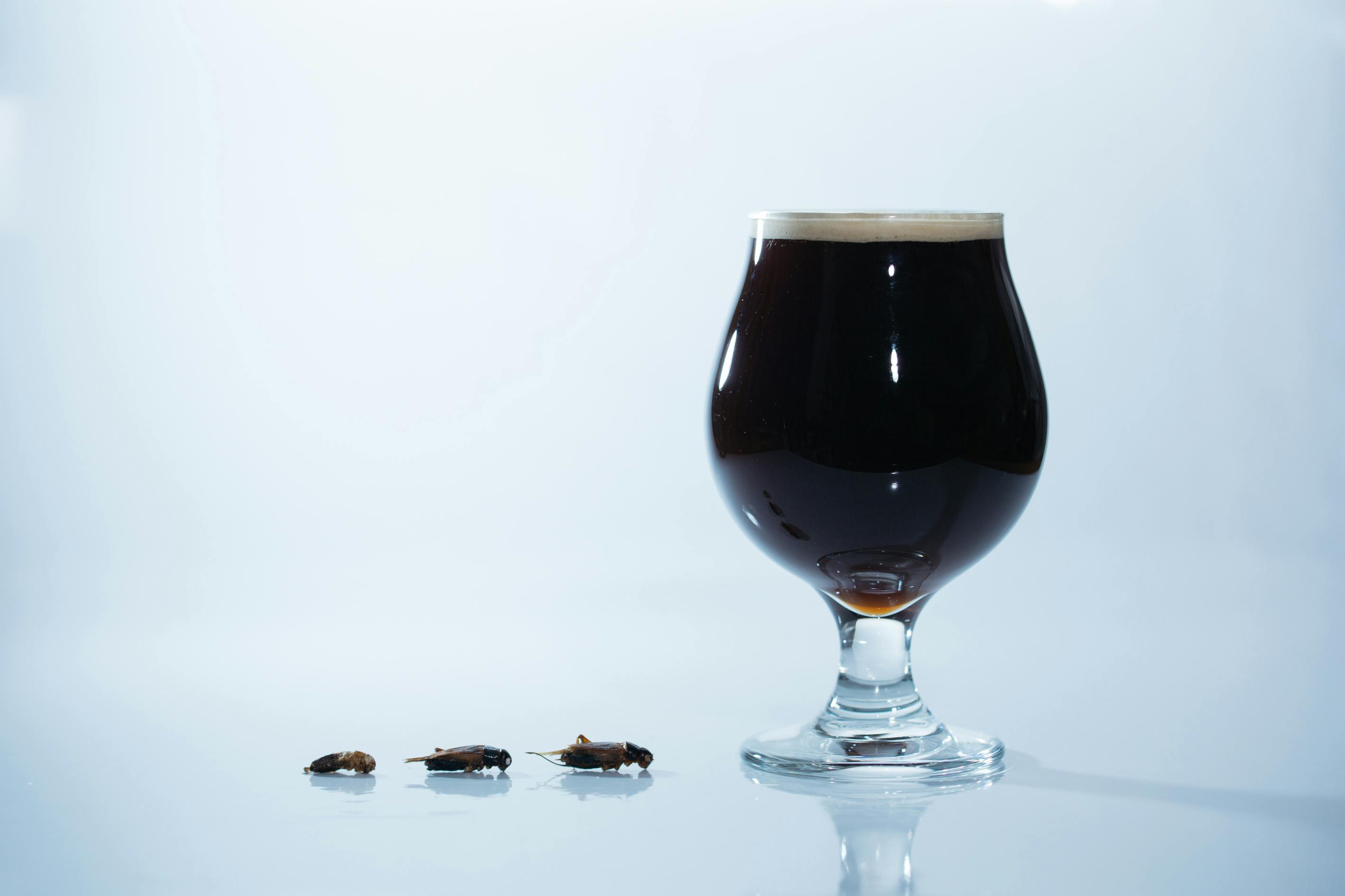 コオロギビールは、こだわりの国産コオロギを使って製造した黒ビールです。