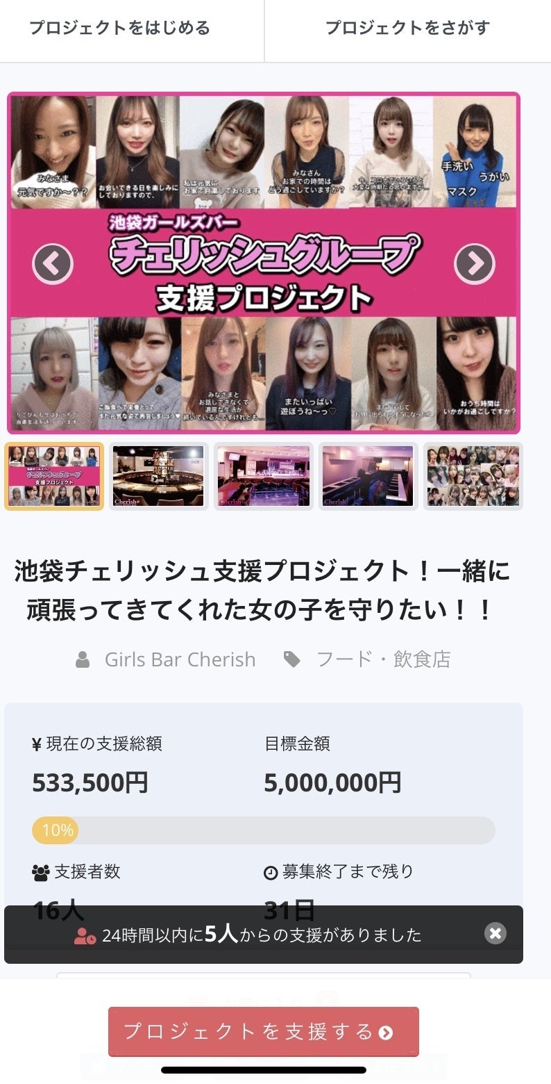 「池袋チェリッシュ支援プロジェクト!一緒に頑張ってきてくれた女の子を守りたい!!」