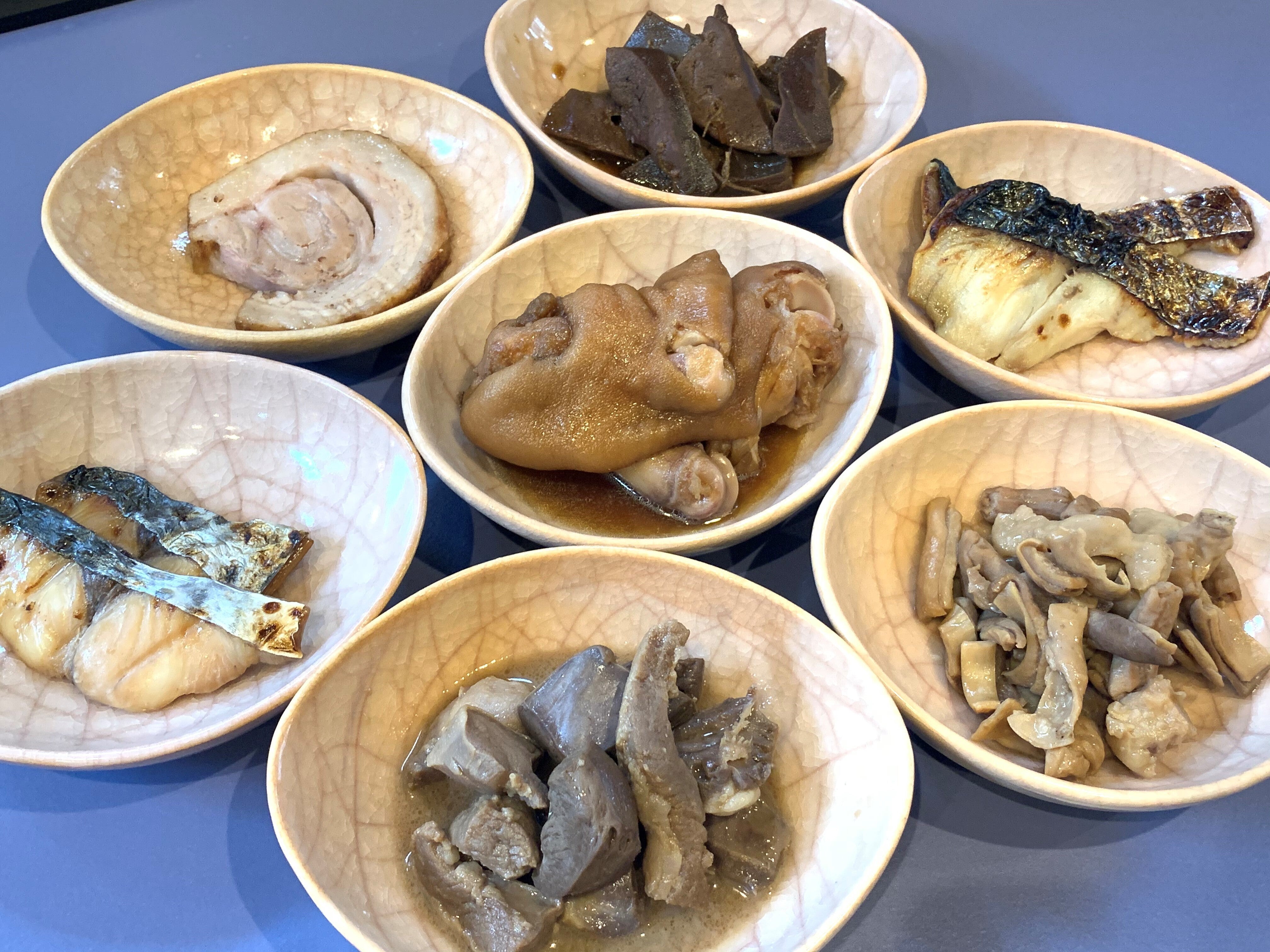 ちりめん山椒・鰆の幽庵焼・鰆の西京焼き・豚足煮・ミックスホルモン焼き