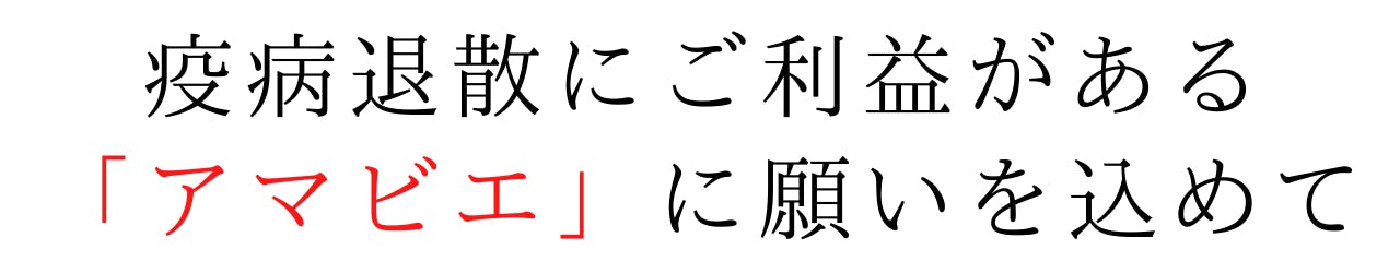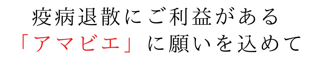 言い伝えによると、熊本県の海の中で1度だけ目撃され、その光を放つ半人半魚の姿をした「アマビエ」が目撃されると、6年間は豊作だが、併せて病気もはやるとされました。そのアマビエ自身が「私の姿を写して人に見せよ」と病気から逃れるための方法を伝えて消えたとされています。