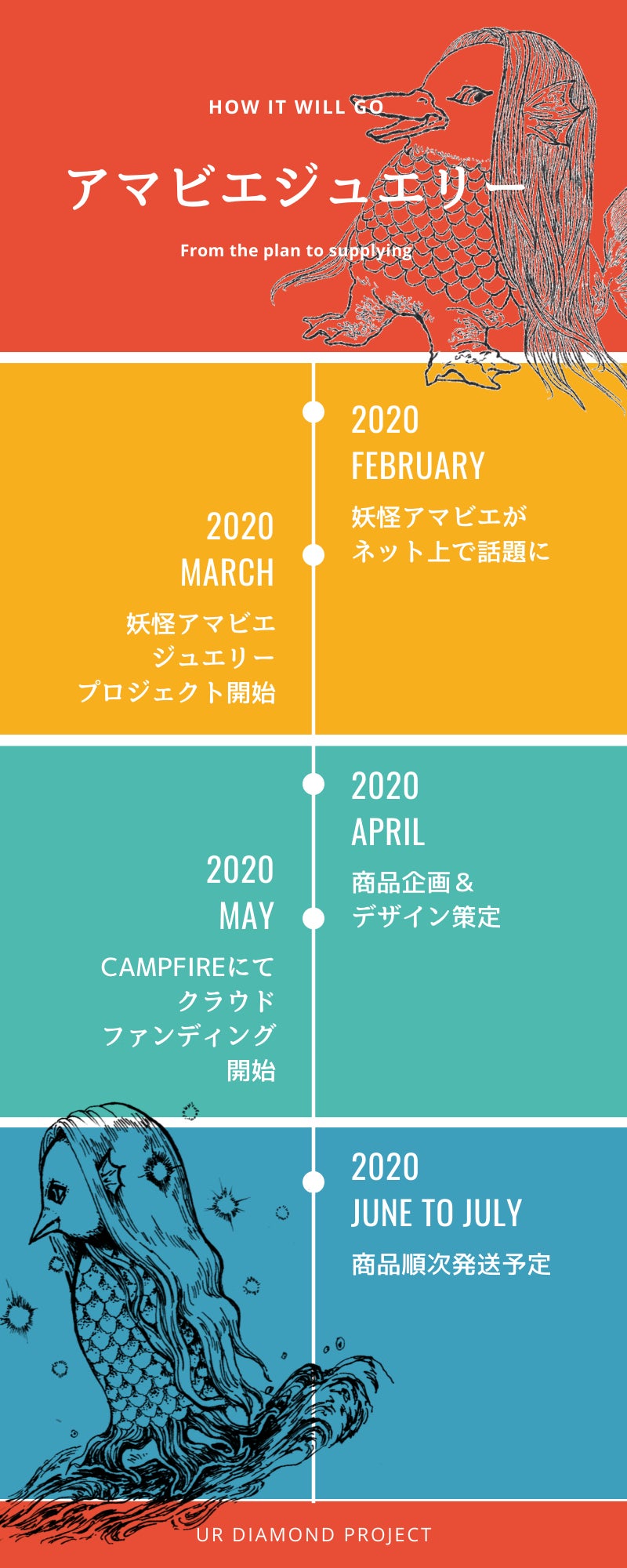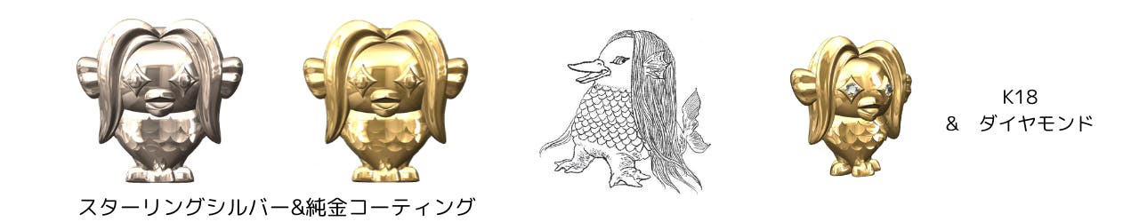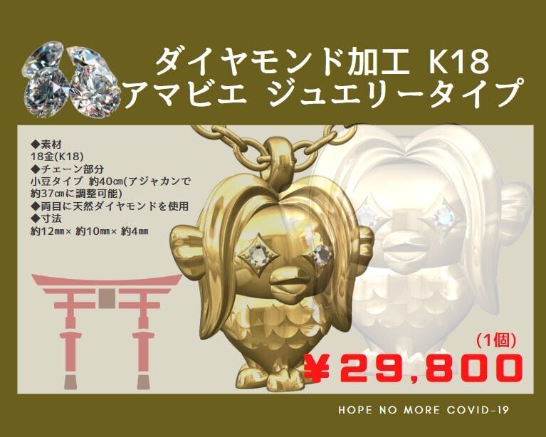 私たち、ur diamond (ユアダイヤモンド)チームも、「アマビエ」のなんとも言えない力の抜けた見た目とゆるい雰囲気でありながら、ご利益のある妖怪の力を借りて明るい気持ちになってくれる方が少しでも増えてくれたらなと思い、ジュエリーとして身に着けたり、忍ばせて楽しむことができるよう企画しました。※ジュエリーデザイン、及び画像はur diamondのオリジナルのもとなります。
