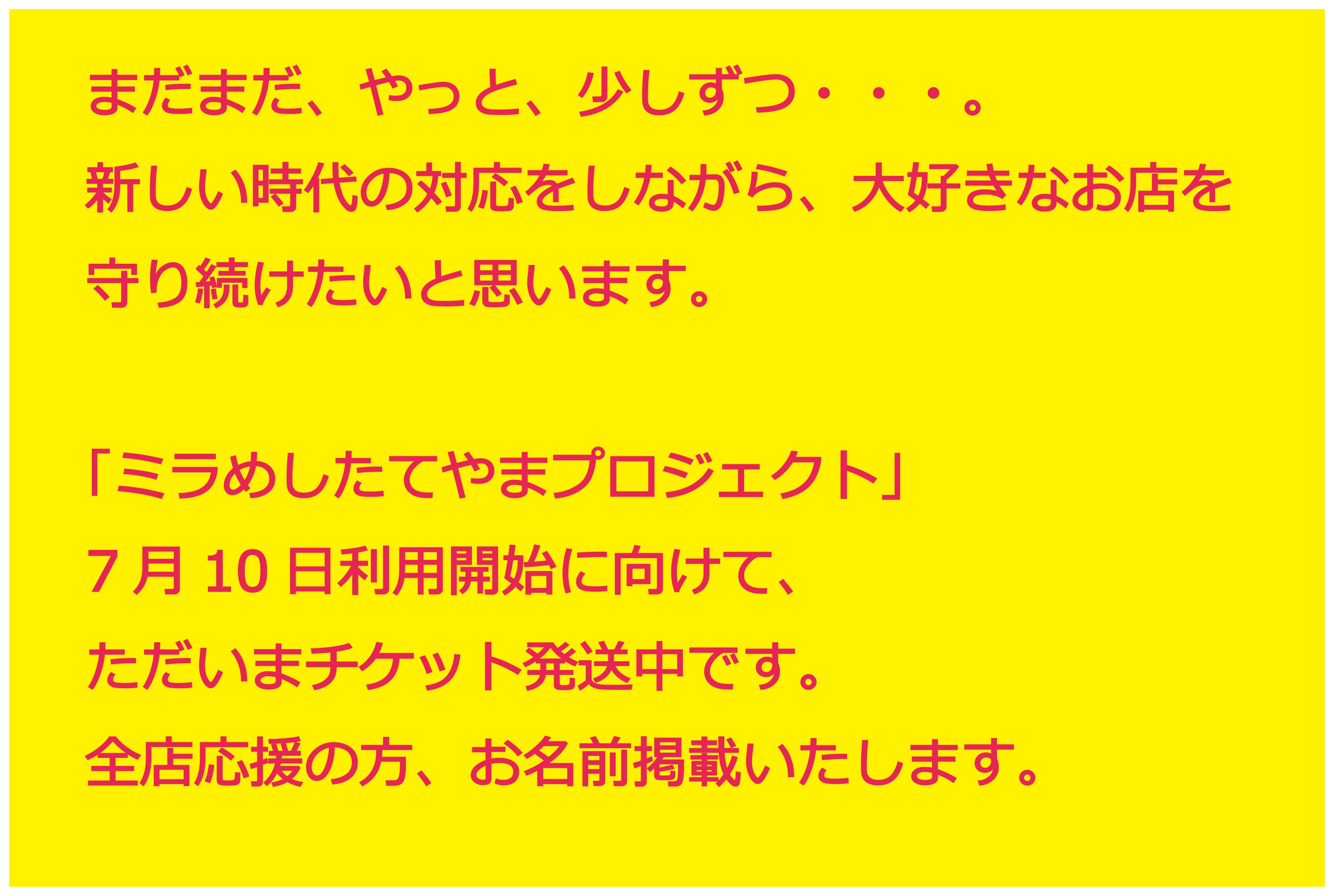 ご支援ありがとうございました。チケット発送中です。全店応援の方、掲載いたします。