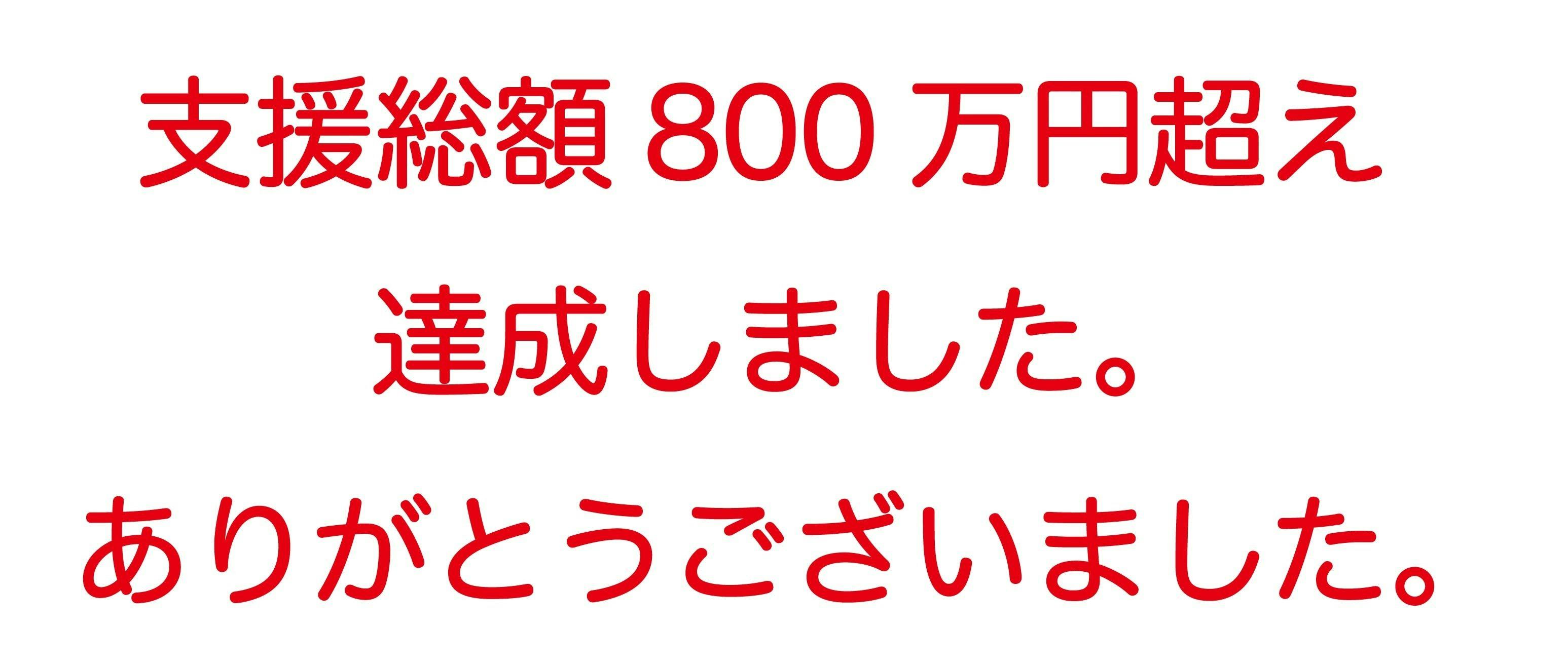 ご支援ありがとうございました。800万円を超えたご支援に感謝、感激、感動です。