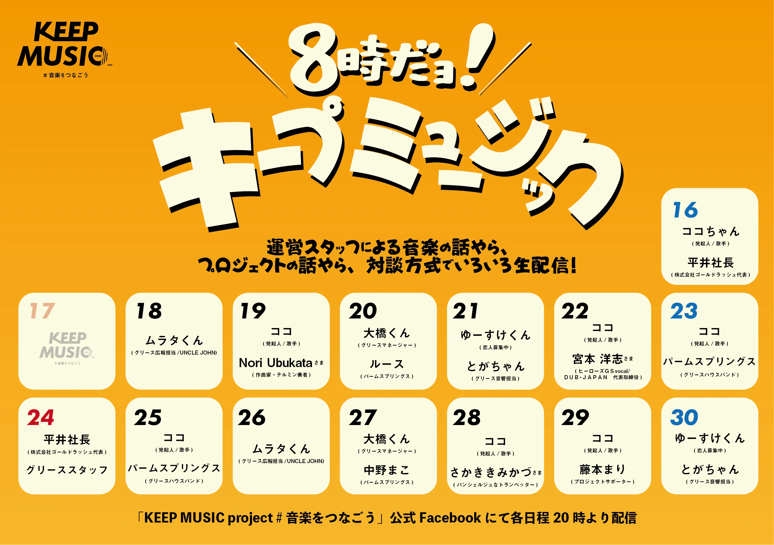 【8時だヨ!キープミュージック】毎日20時ライブ配信行います。