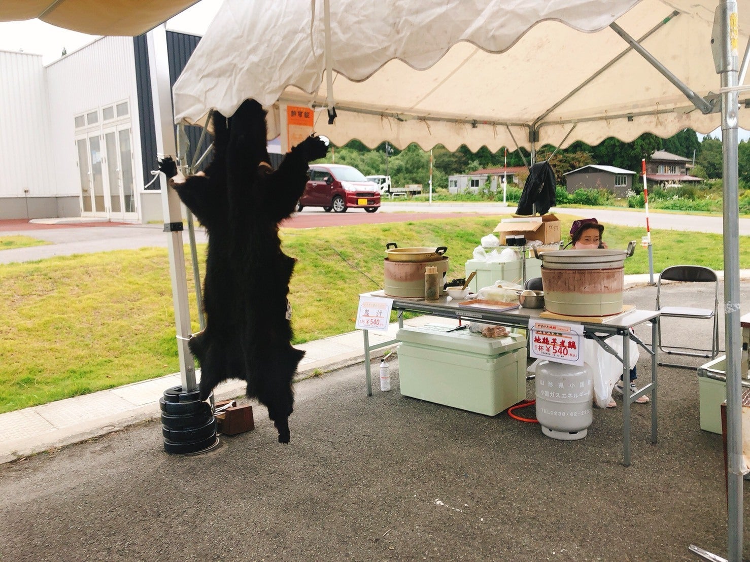 熊の毛皮も飾ってみました。記念撮影される方も多いです。