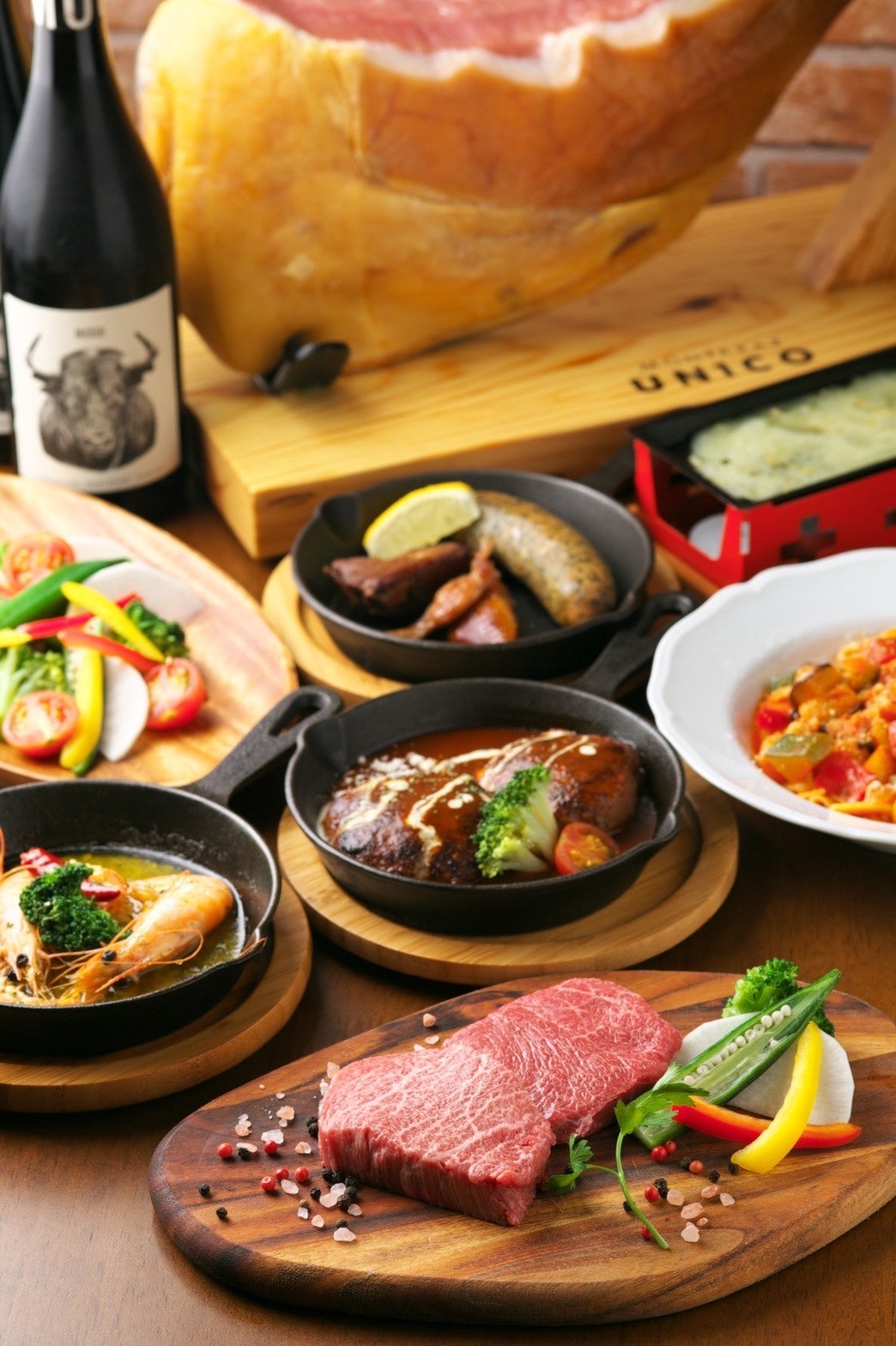1店舗目であるお店の業態は肉バルになります。メニューは近江牛などの肉料理は勿論、オープン当初よりメニューにあるラクレット、そして格安な飲み放題プランが人気でテレビや雑誌等に多く取り上げられ、観光のお客様は勿論、年間を通して地元の宴会やパーティー等でご利用いただいております。