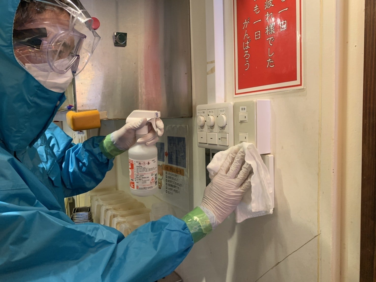 の、店内を徹底除菌いたしました
