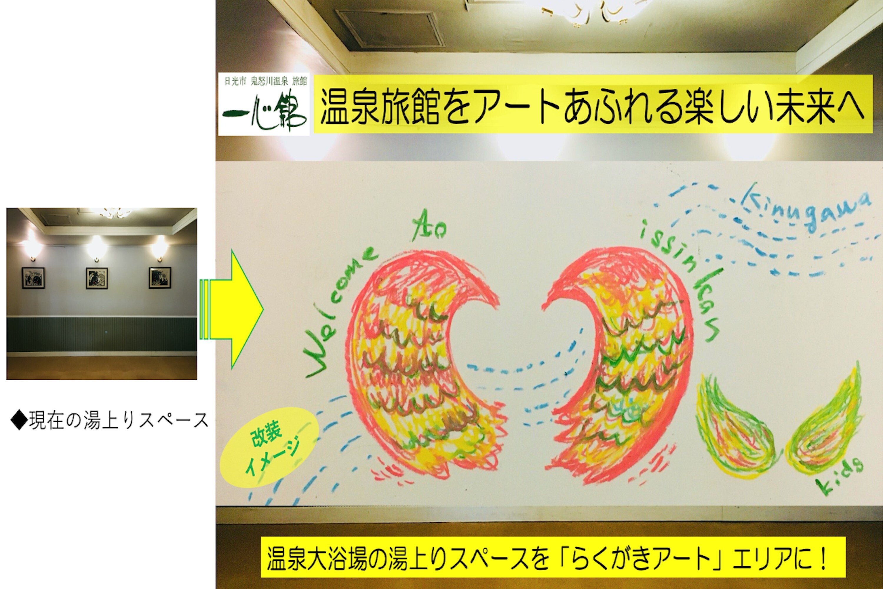 ・温泉大浴場の湯上がりスペースをみんなの集う「らくがきアート」エリアに改装