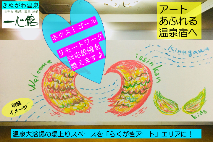 今回のクラウドファンディングへのチャレンジ内容「温泉旅館の枠を超えもっと自由に♪アートあふれる新しい未来をいっしょに創りたい!」も、温泉入浴時に浮かんだ考えです。