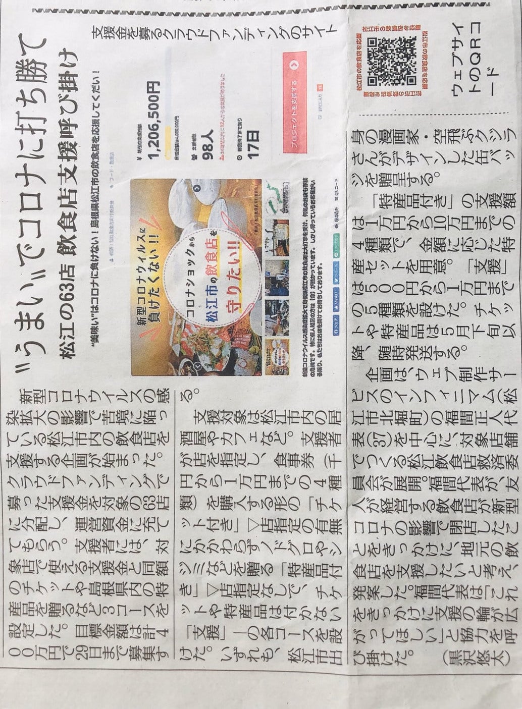 新聞社『山陰中央新報』にて当プロジェクトをご紹介して頂きました。
