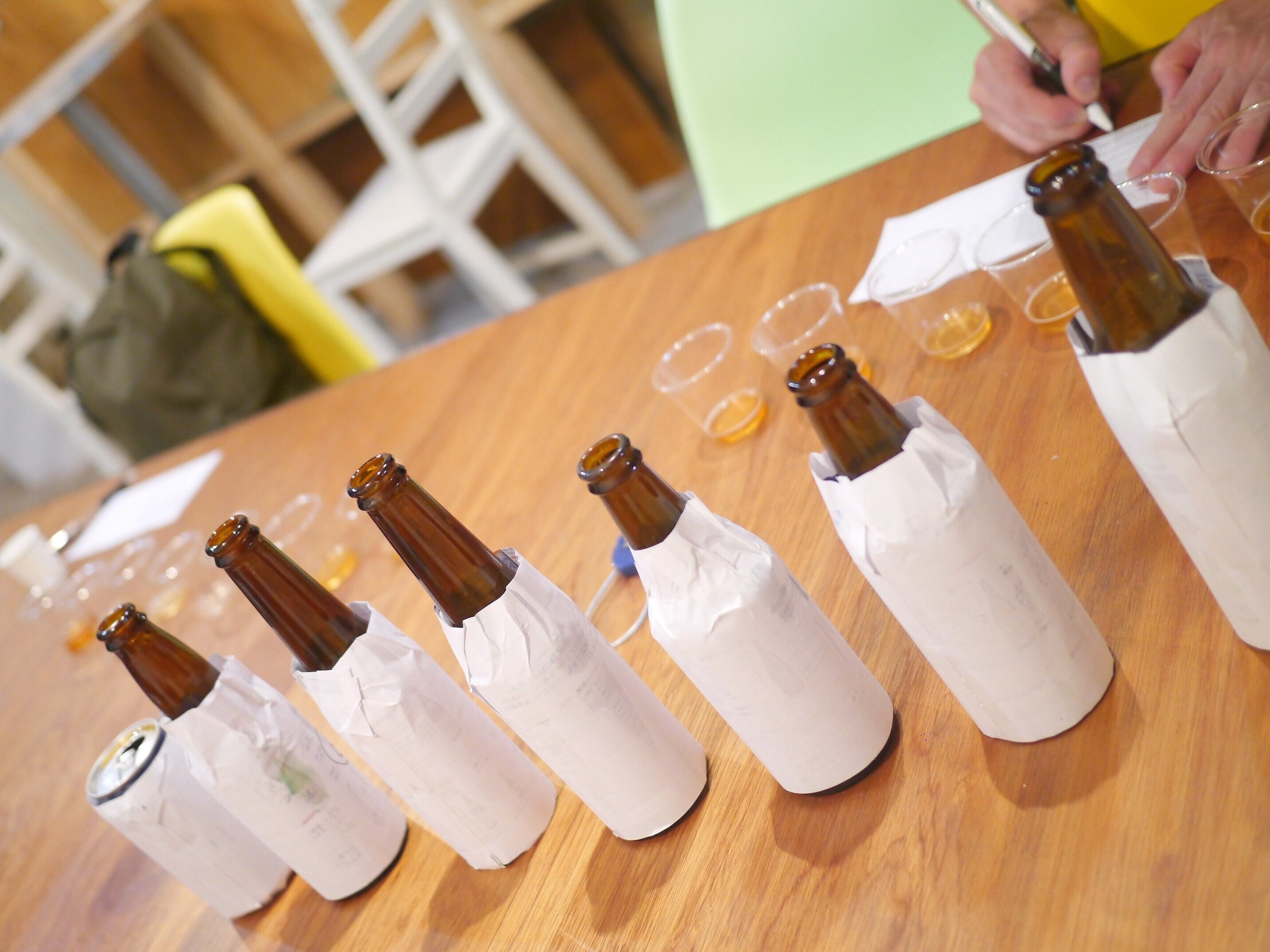 2019年夏、委託醸造先は決まらないものの、地域の情報誌 高島平新聞さんで大きく取り上げて頂き、地元の方から注目を頂くようになりました。たくさんの醸造所のビールを取り寄せ、ブラインドでの試飲会と議論を重ね「華やかな香り、爽やかな苦みと少しのコク、爽やかな余韻」「贅沢感のあるビール。クセの強いビールではなく、比較的多くの方に喜んでもらえる味わい。」「ラベルには高島平をイメージするモチーフを盛り込む」など、徐々に詳細なイメージが固まっていきました。合わせて、提供価格、流通・保管方法、など、実現に向けてできる事、できない事を議論していきました。