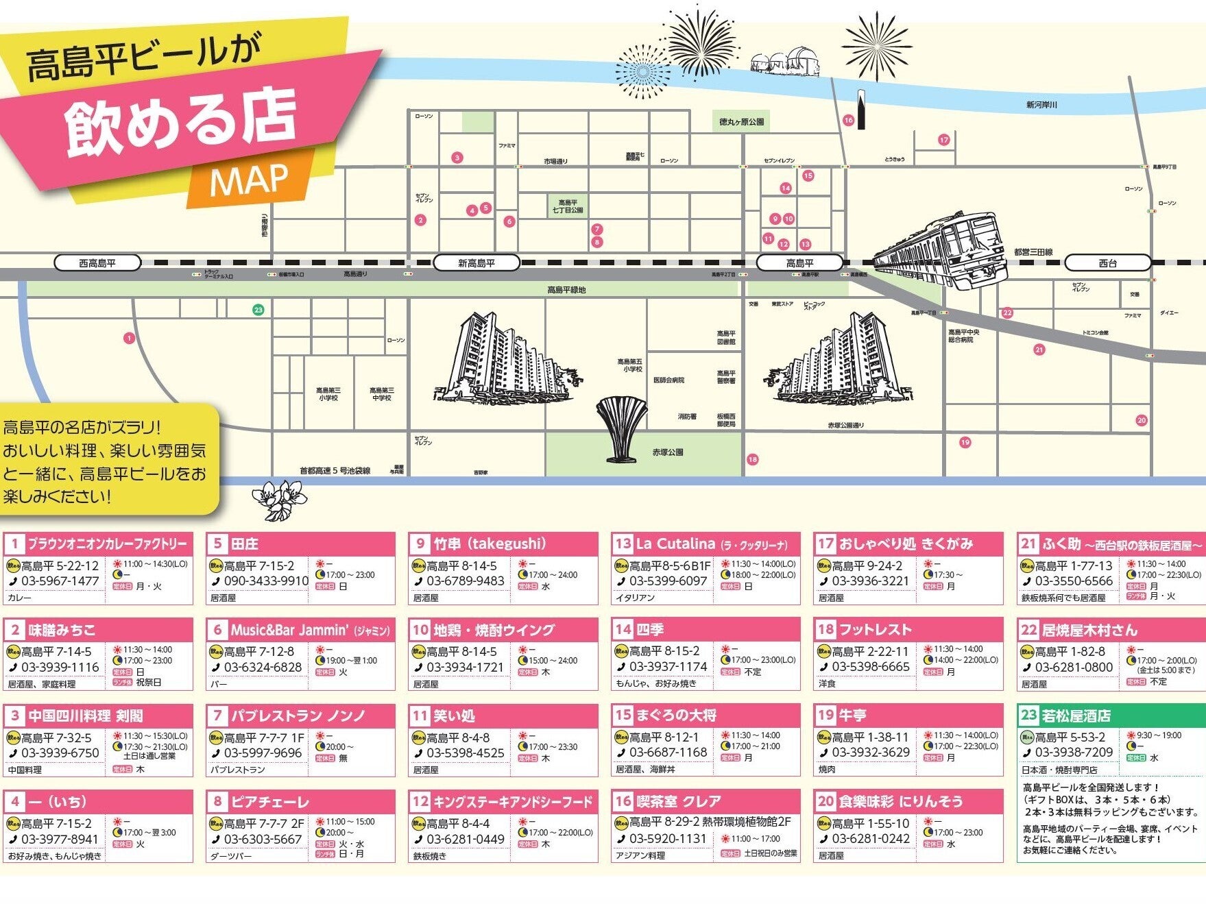 高島平ビールが飲める店は「みんなで高島平を盛り上げよう!」という考えに共感頂けた、高島平愛に溢れたお店です。2020年4月現在、高島平地域23件、近隣地域3件のお店で、高島平ビールを楽しむことができるようになりました。新型コロナウイルスの騒動が収束しましたら、ぜひ高島平のお店で高島平ビールをお楽しみください。現在東京都の休業要請を受け、営業時間や営業形態が変わっているお店もございます。最新の情報は各お店までお問合せください。