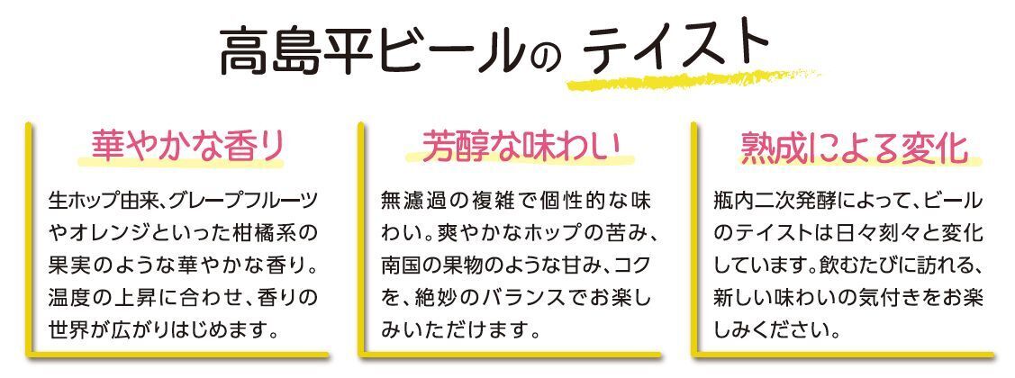 生ホップ由来の「華やかな香り」があり、無濾過の造りで「芳醇な味わい」が特徴です。瓶内二次発酵ビールのため、賞味期限は約1年と長く「熟成による変化」も楽しめます。