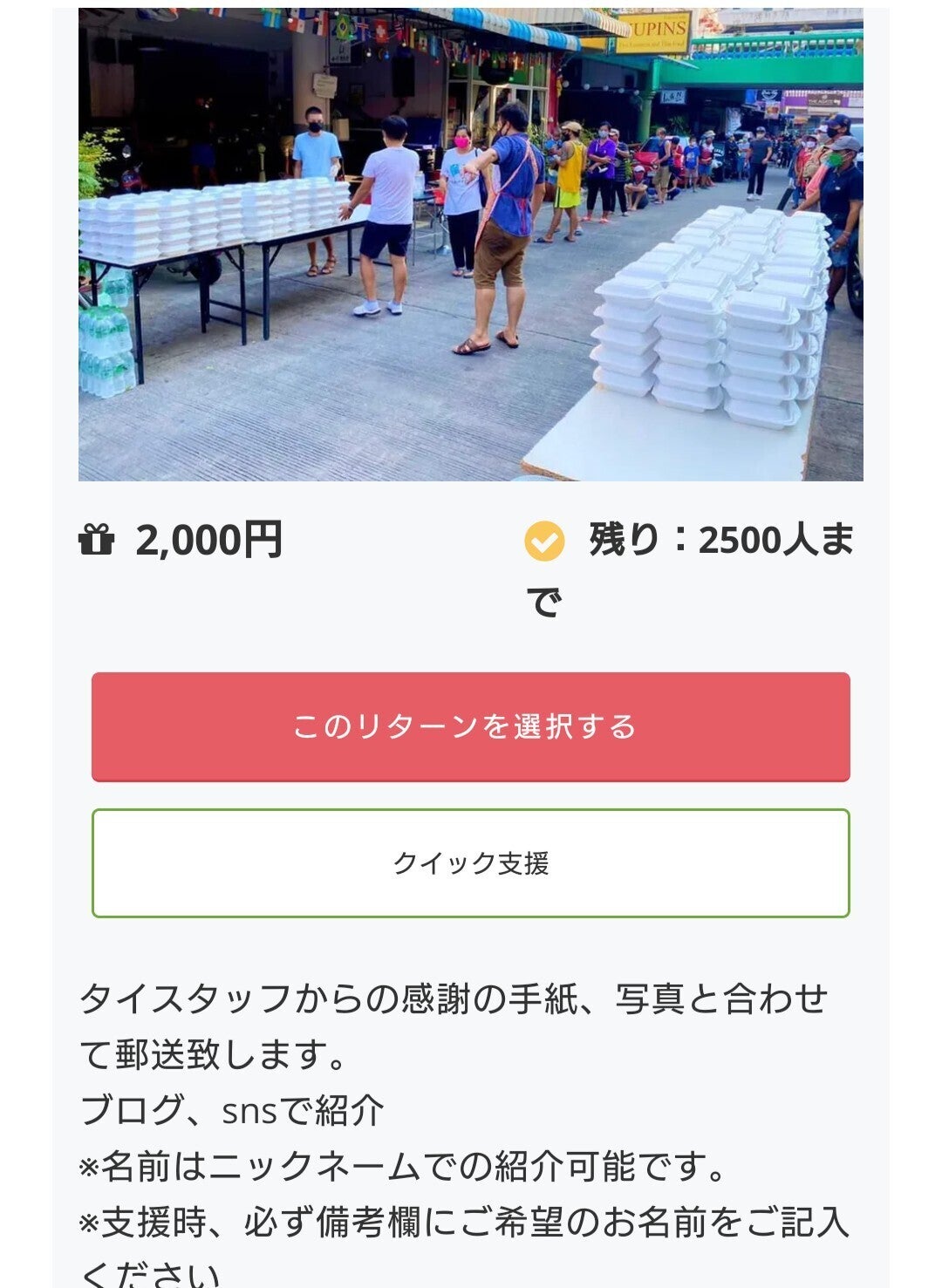 要望にありました、2000円からの支援も募集開始しました。