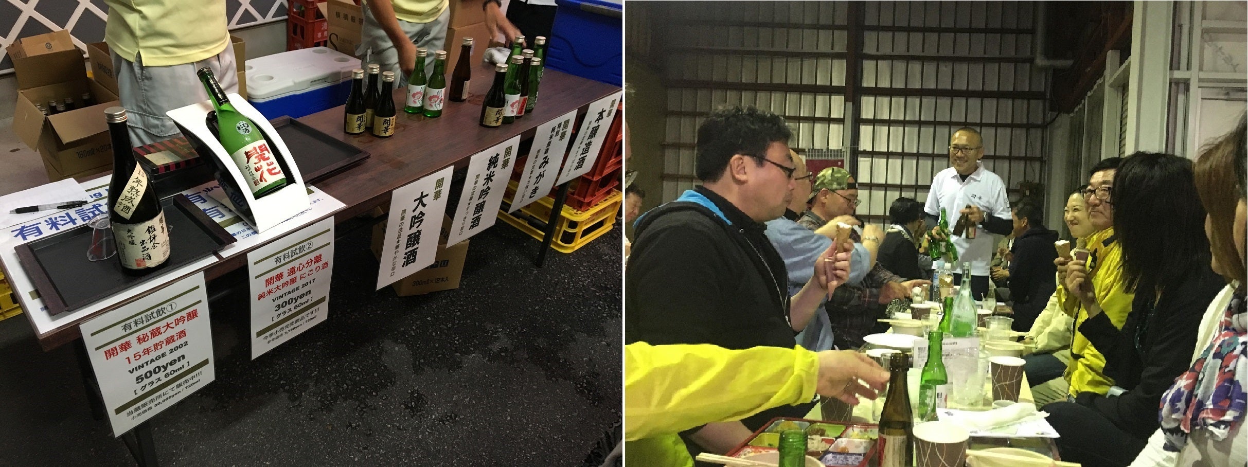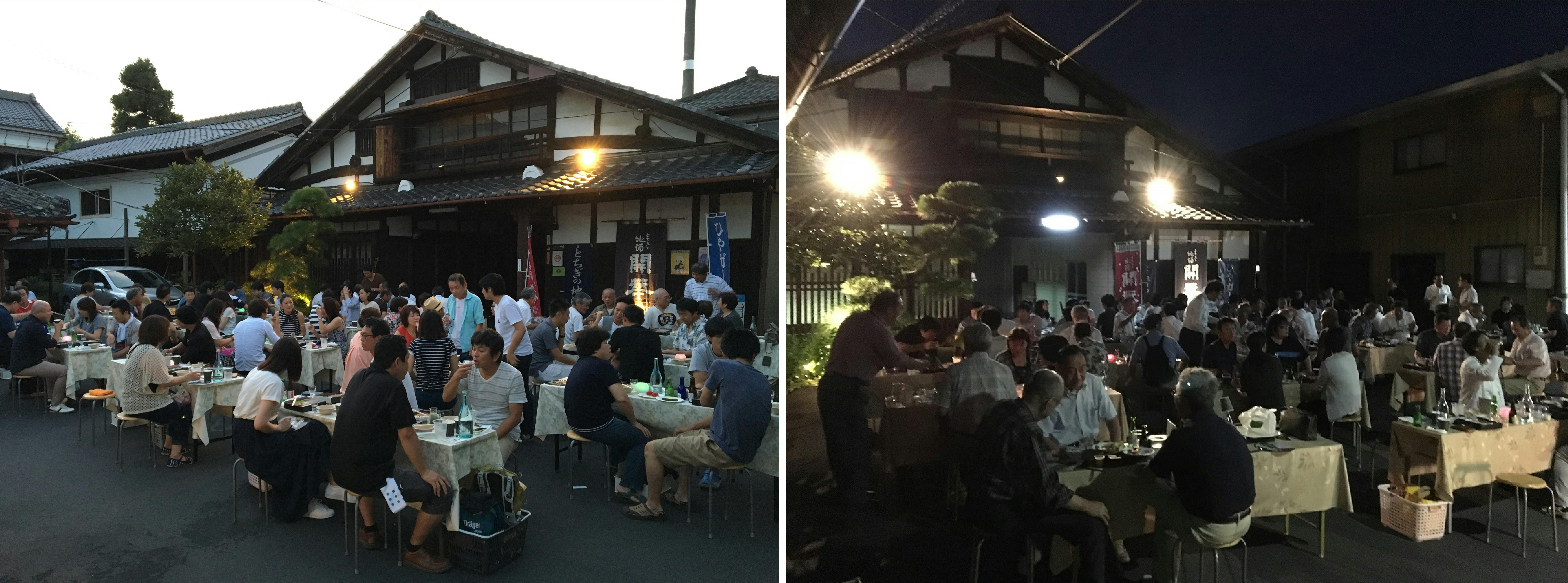 日本酒をもっと沢山のお客様に飲んで楽しんでいただきたい、という熱い想いから始まった夏の酒蔵イベントが「ひやガーデン」です。「ビアガーデン」ならぬ、日本酒を楽しむ「ひやガーデン」と題し、酒蔵の中庭スペースで、毎回 80 名の方々にお集まりいただき、特製弁当と地元野菜、名水豆腐などをツマミに、「開華」を思う存分「飲み放題」で楽しんでいただいております。おかげさまで、チケット発売直後に即売り切れ という日がある程の、夏恒例の人気イベントです。