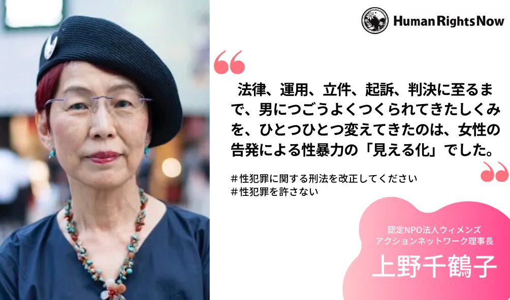 「ヒューマンライツ・ナウは、現に監護していなくても、地位関係性を利用した性暴力についても処罰できるように、新たに法律を加えることを求めます。」