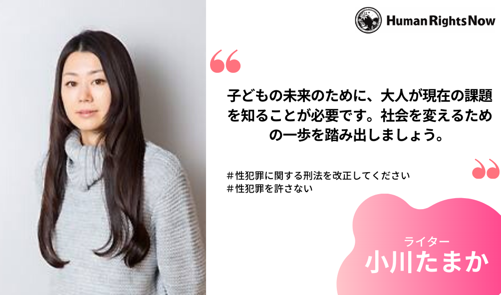 「ヒューマンライツ・ナウは、現に監護していなくても、地位関係性を利用した性暴力についても処罰できるように、新たに法律を加えることを求めます。」