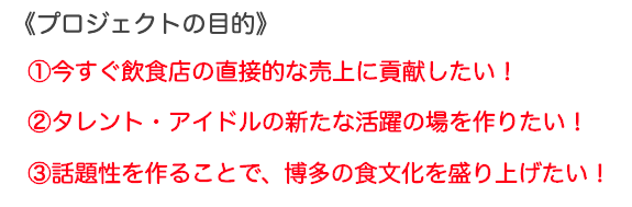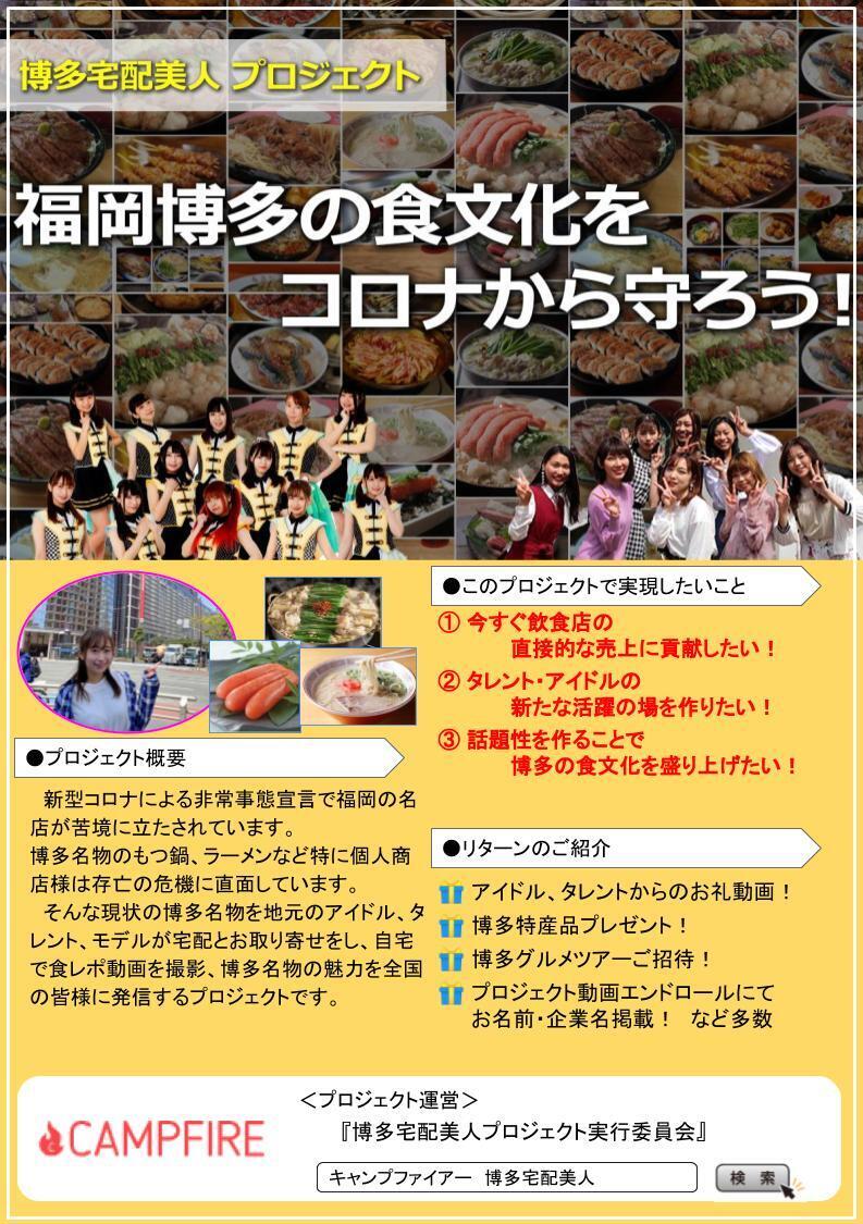約50人の地元福岡のタレント、モデル、アイドルがこのプロジェクトにすでに賛同していただき、参加を表明しています!さらに関係者を含め約300人が「# 博多メシを守ろう!」で拡散をしていきます。